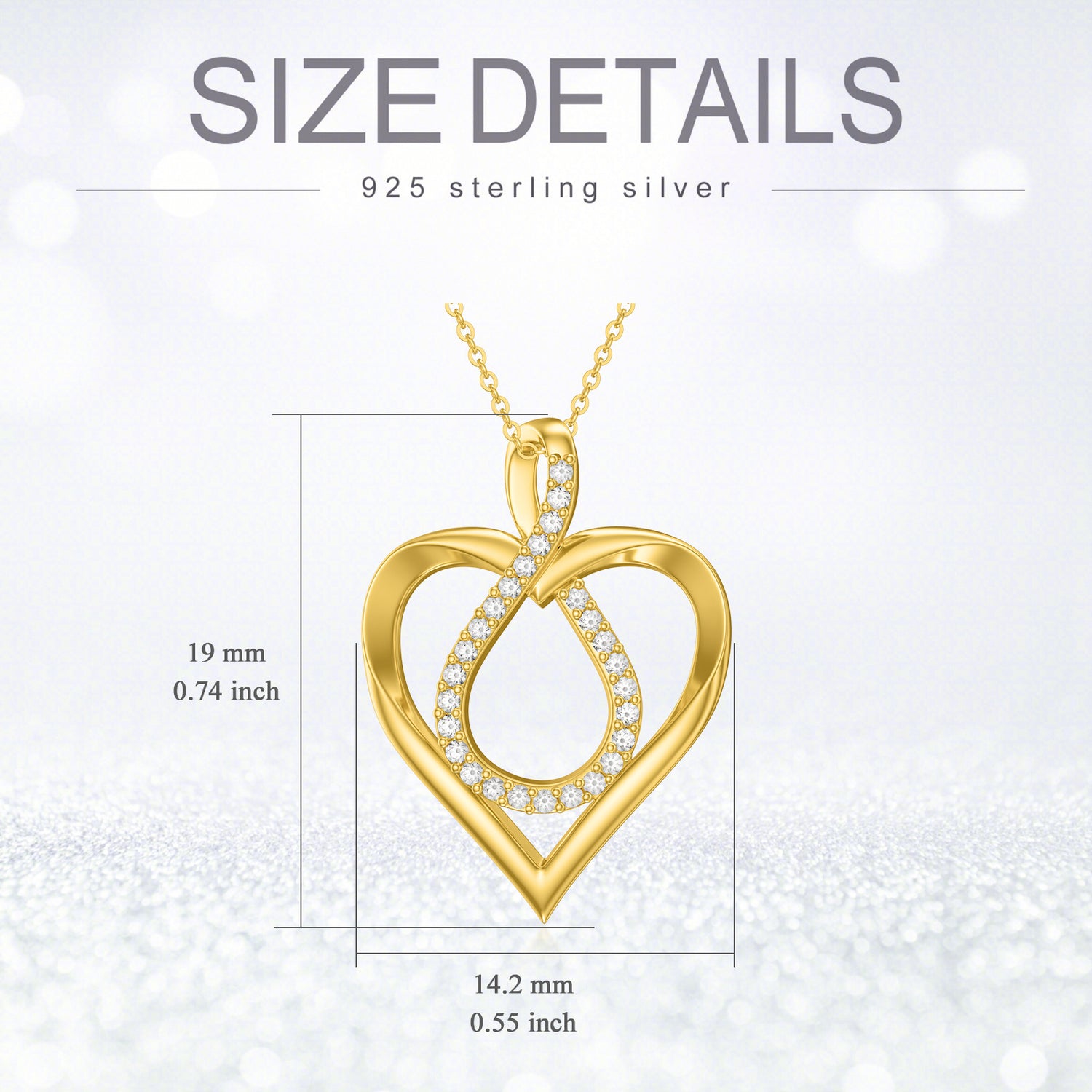 This Pendant Necklace is crafted from Premium 14K Gold, featuring a Heart-Shaped and Infinity Symbol Design adorned with Sparkling Cubic Zirconia.