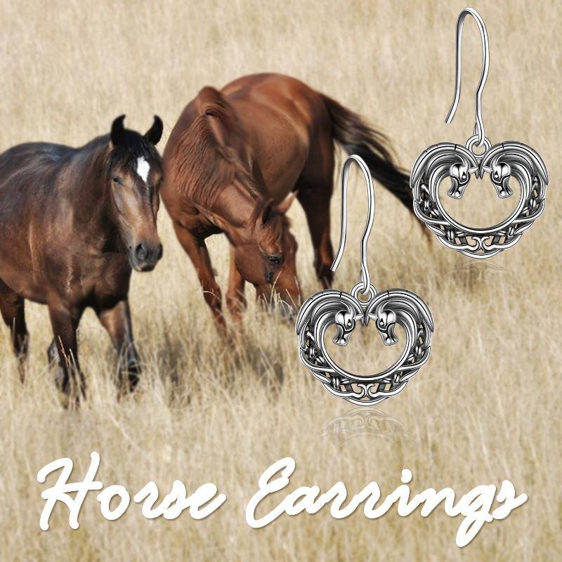 These no-stone Women's Drop Earrings are crafted from High-Quality Sterling Silver with Retro Silver Finish, Featuring a Unique Horse Design.