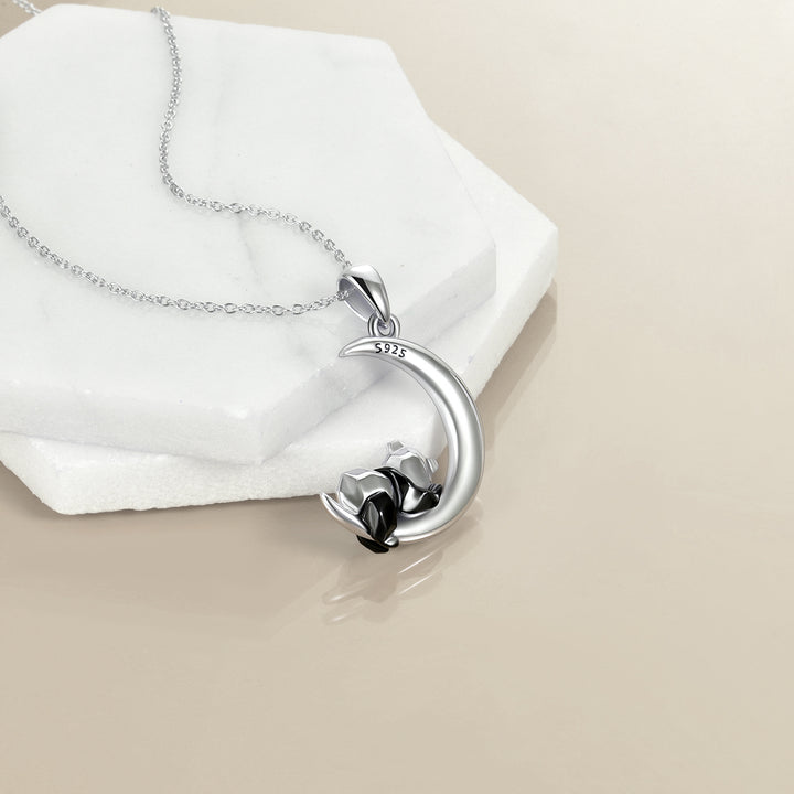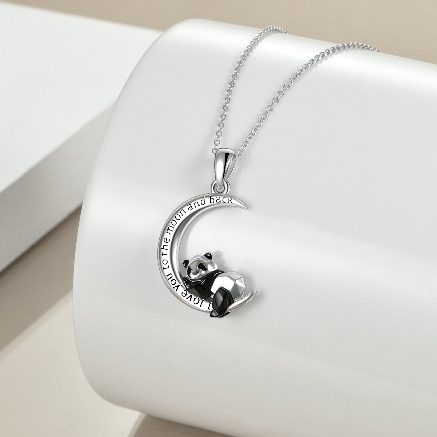 Sterling Silver Panda & Moon Pendant Necklace with Engraved Word