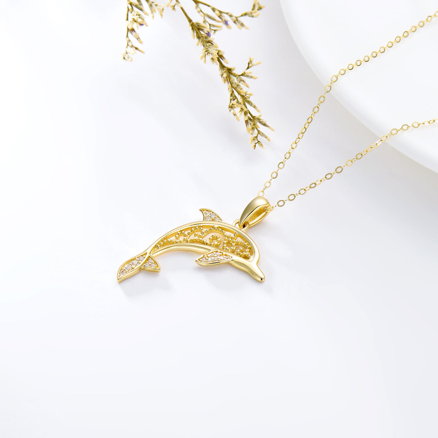 14K Gold Cubic Zirconia Dolphin Pendant Necklace
