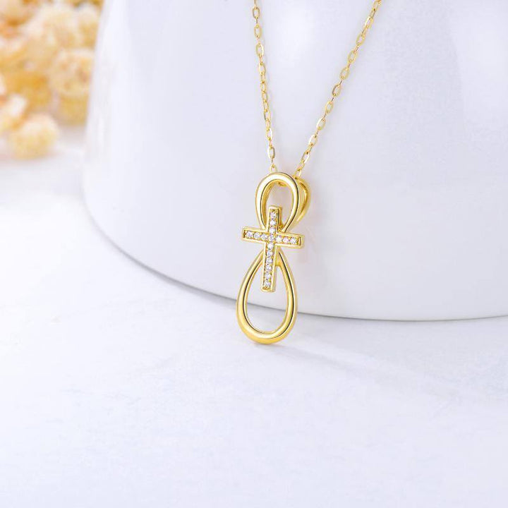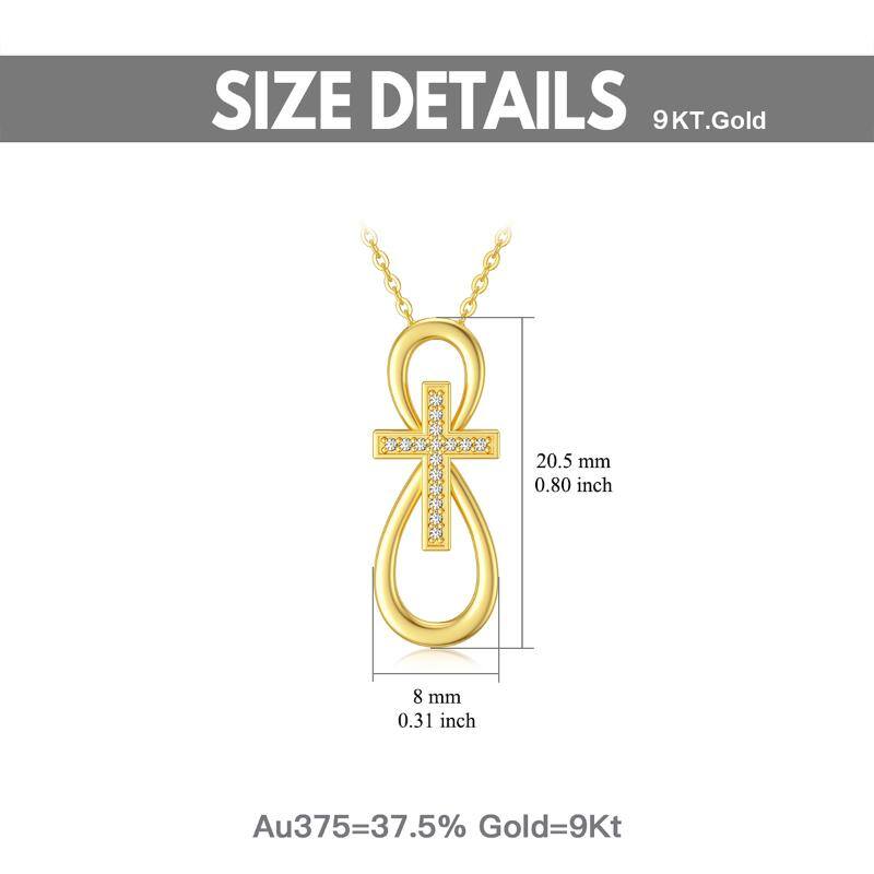9K Gold Circular Shaped Cubic Zirconia Cross & Infinity Symbol Pendant Necklace