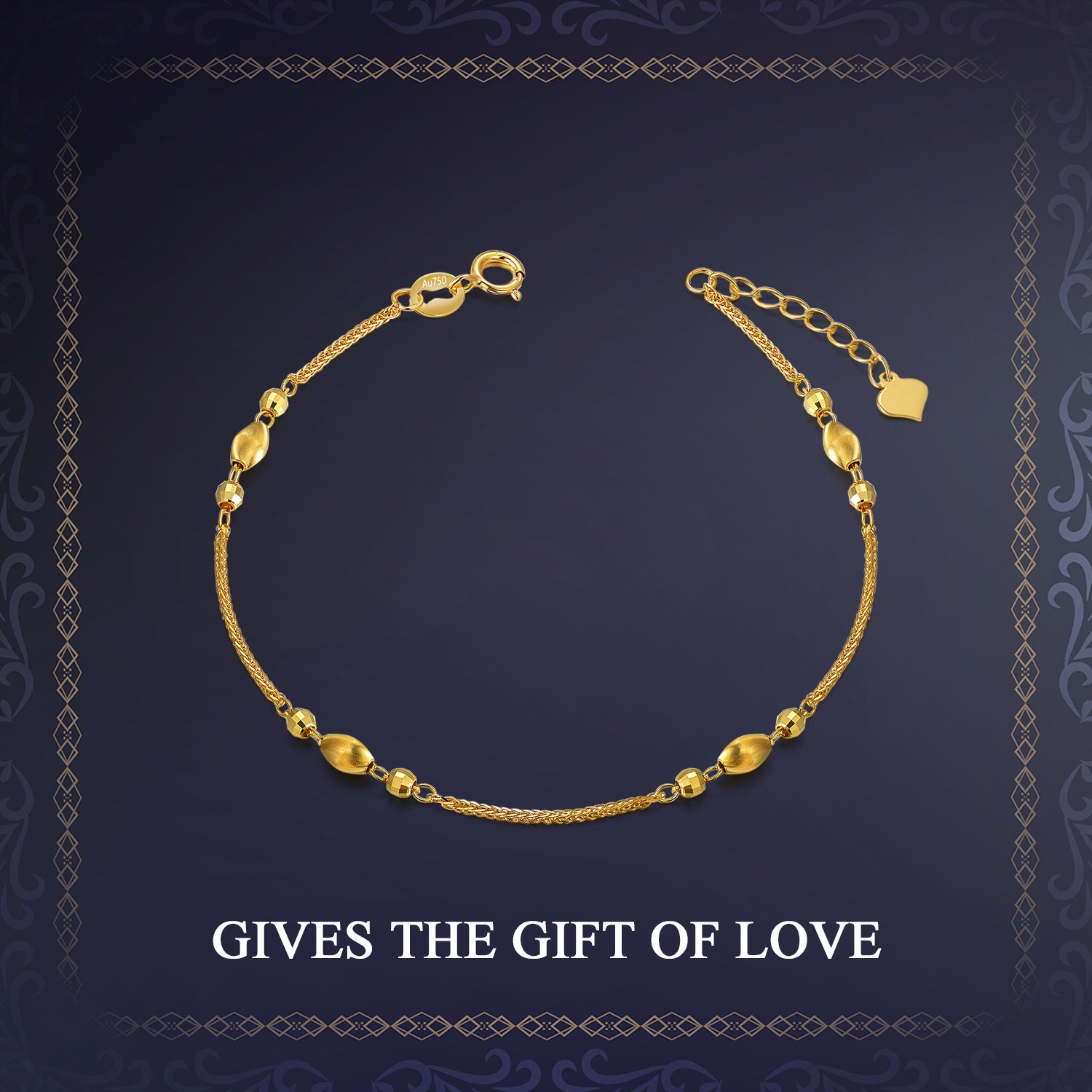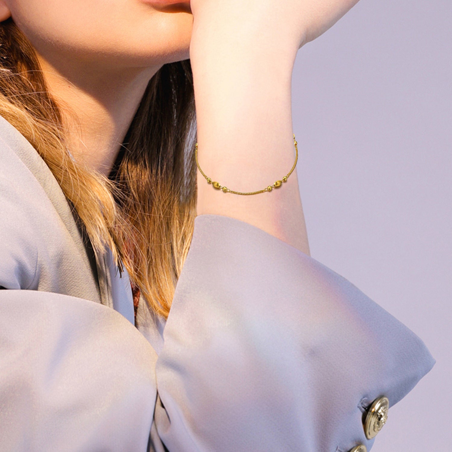 Crafted from solid 18K Gold. This is a Metal Beads Wheat Spike Chain Bracelet (no stones).