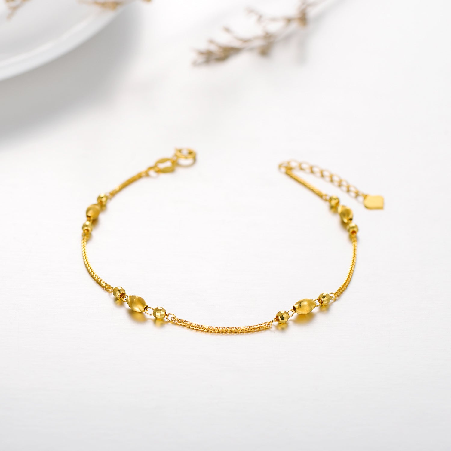 18K Gold Metal Beads Wheat Spike Chain Bracelet