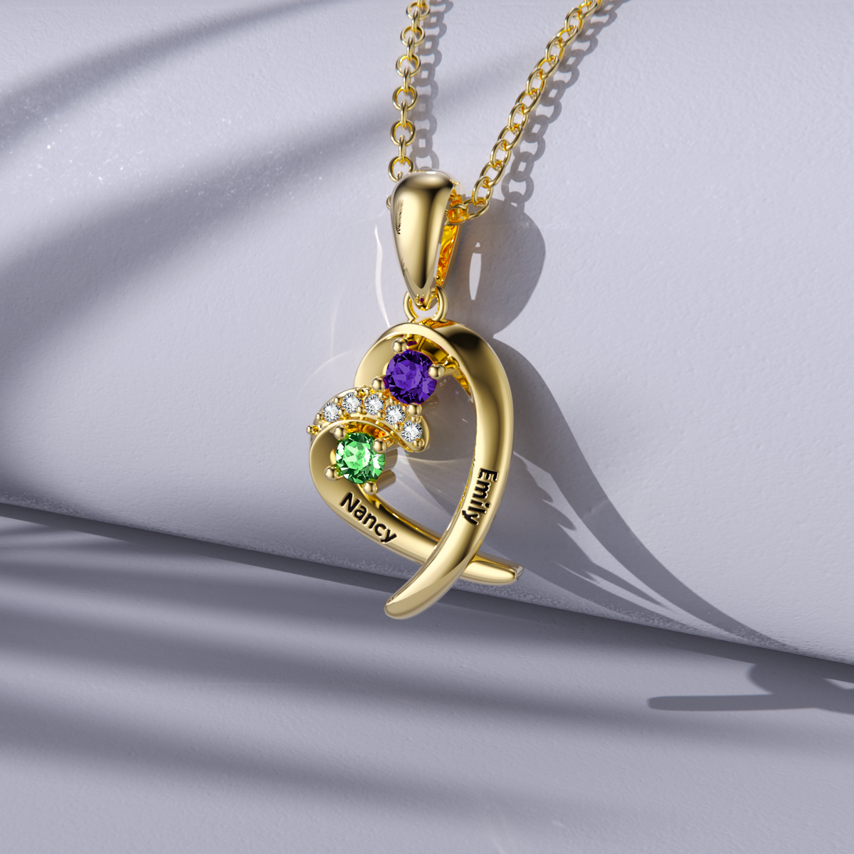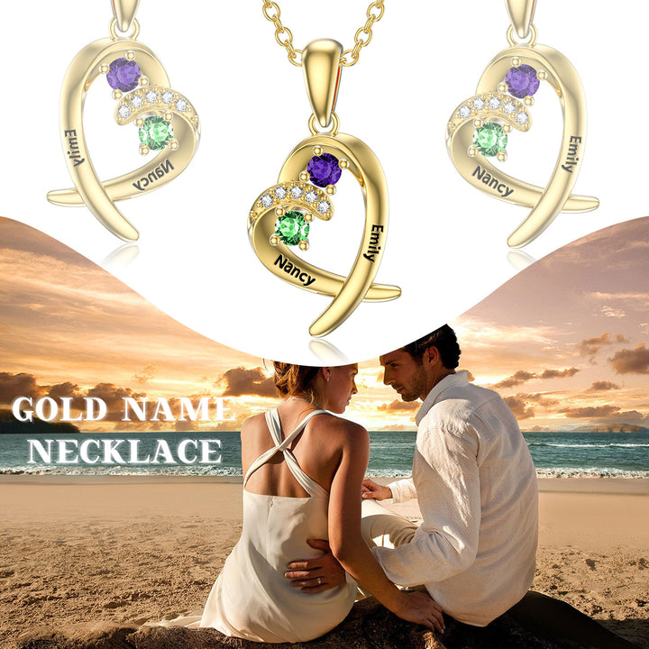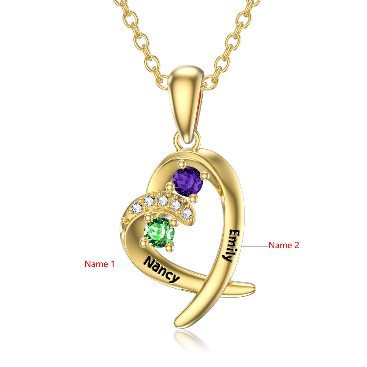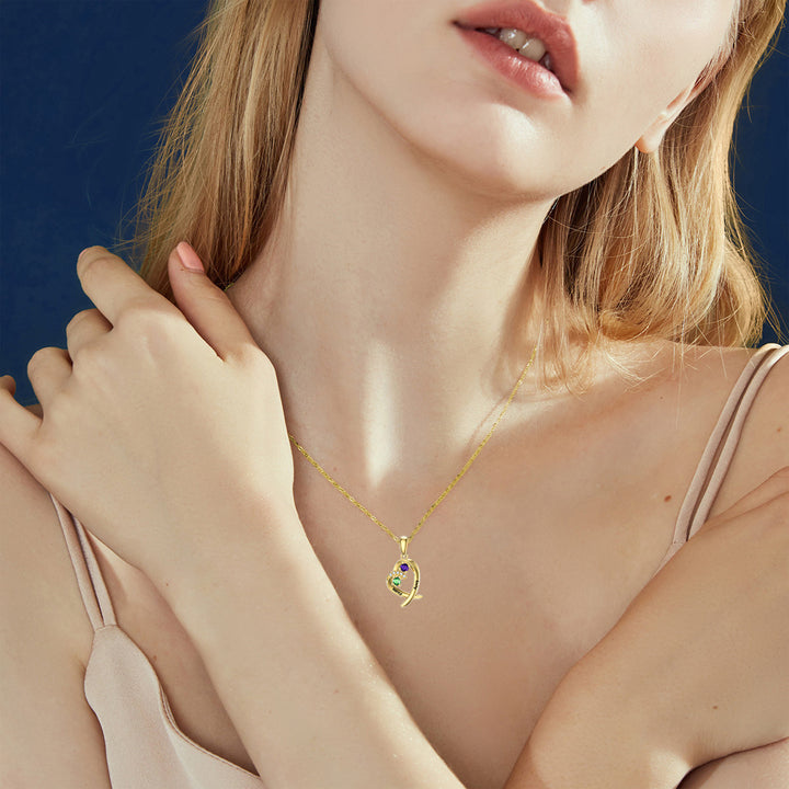 14K Gold Heart Shaped Cubic Zirconia Personalized Birthstone Pendant Necklace