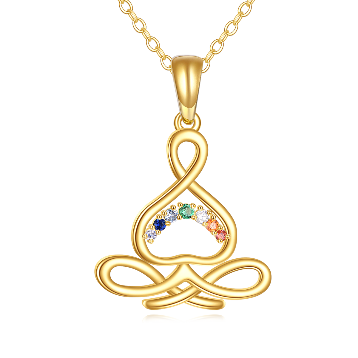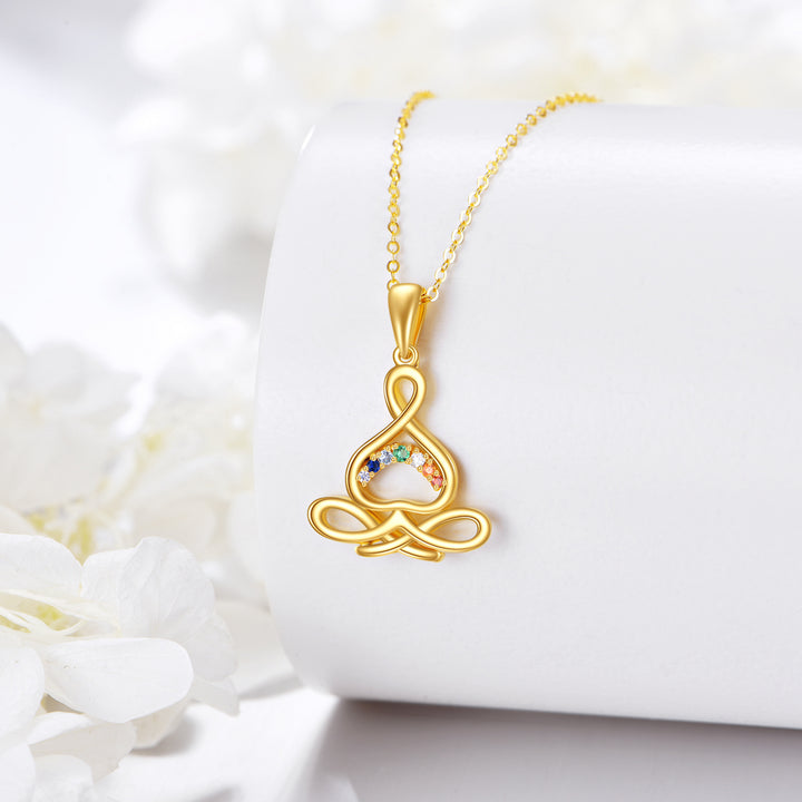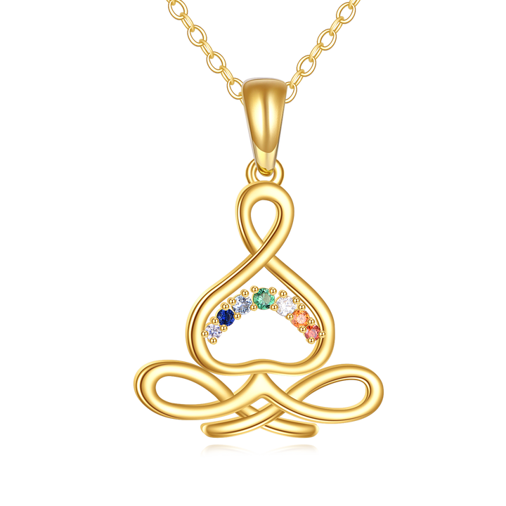 14K Gold Cubic Zirconia Chakras & Yoga Necklace for Women