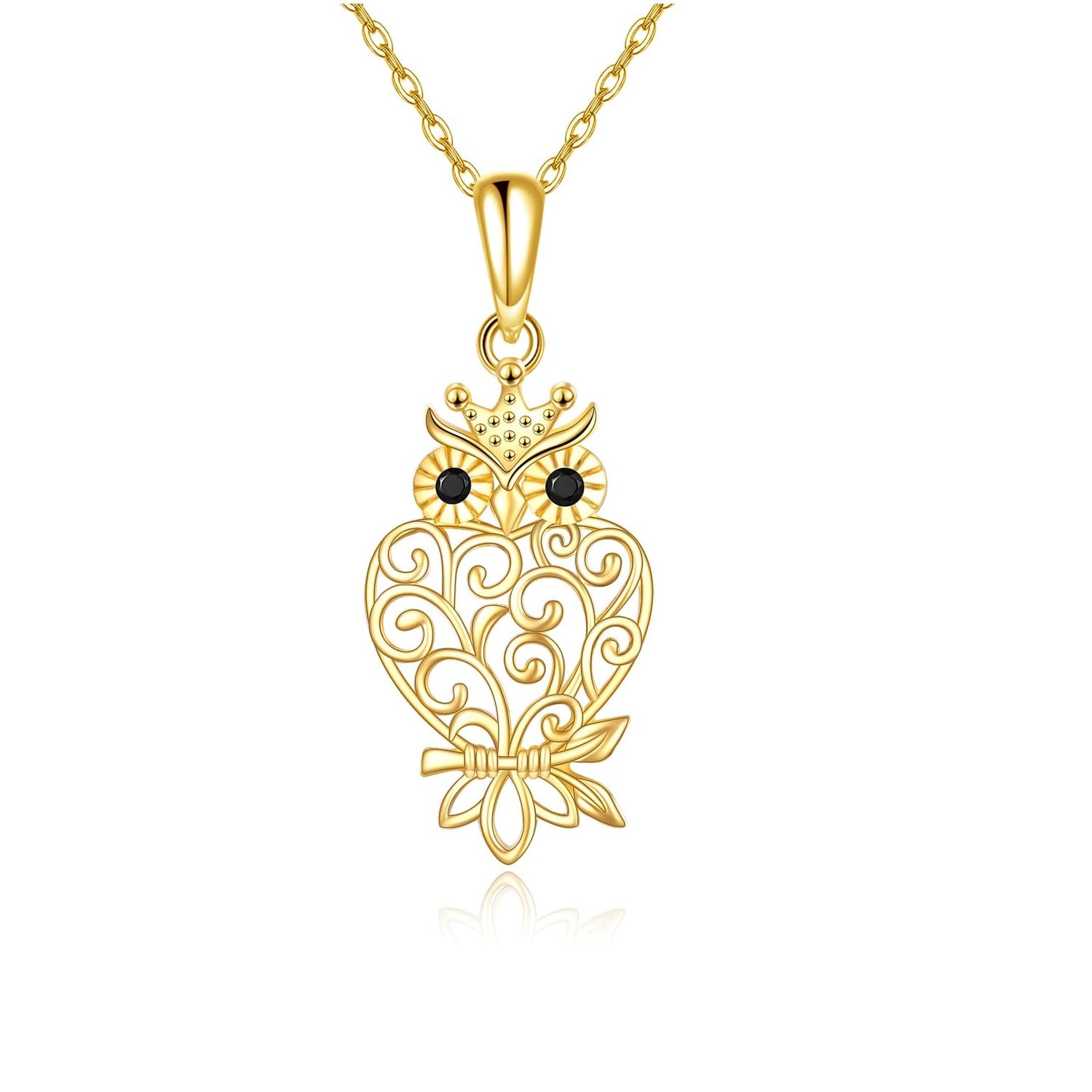 This 14K Gold Zircon Owl Pendant Necklace by YFN is an intriguing and elegant accessory designed for the discerning woman. The striking black owl centerpiece, a classic symbol of wisdom and mystery, is beautifully framed in high-quality 14K gold. Radiant zircon stones add a captivating touch of sparkle, enhancing the necklace's luxurious appeal. This piece effortlessly combines sophistication and charm, making a unique statement that celebrates individuality and refined taste.