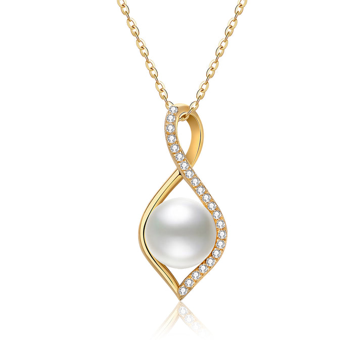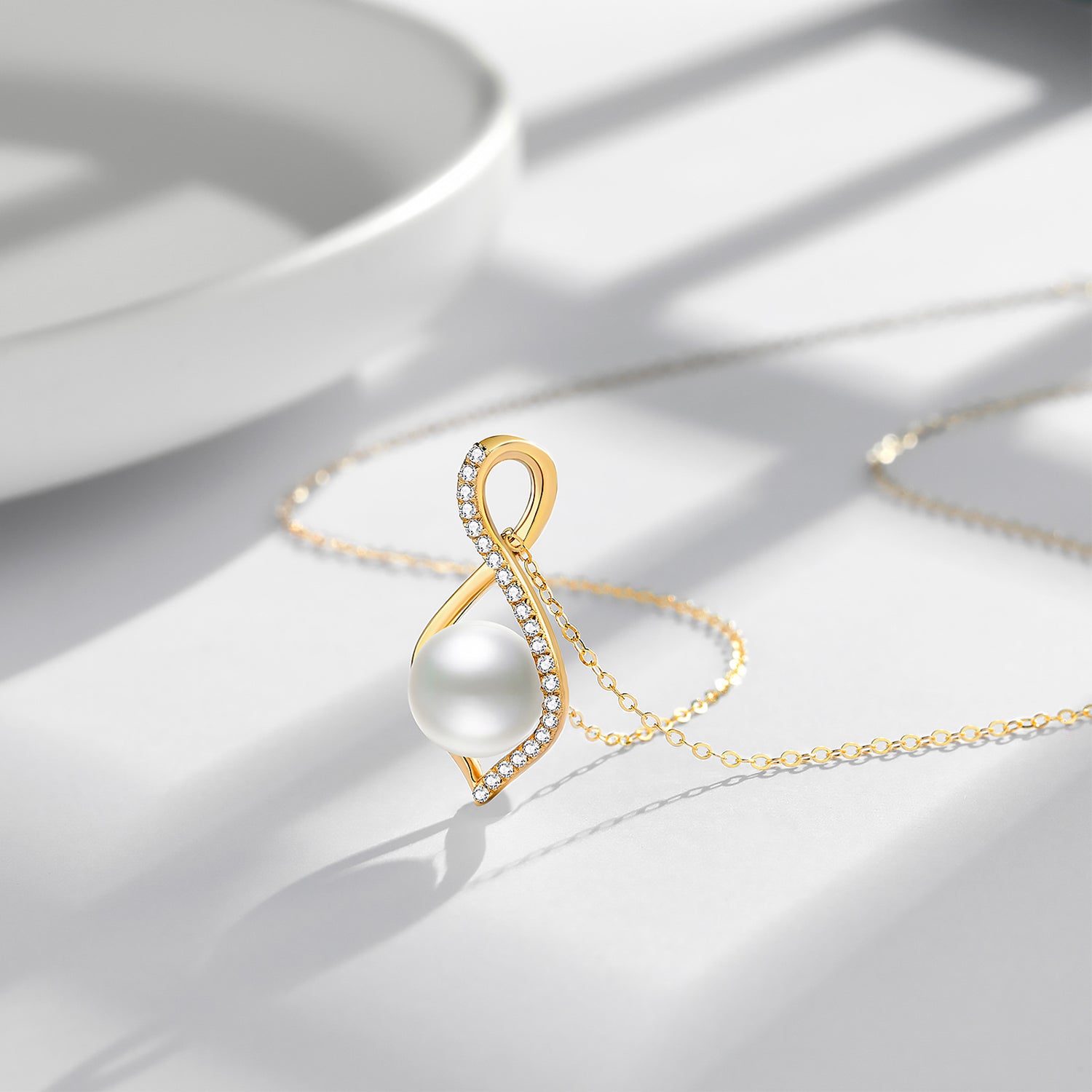 14K Gold Moissanite & Pearl Infinite Symbol Pendant Necklace