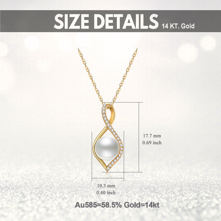 This Pendant Necklace is crafted from Premium 14K Gold, featuring a Dazzling Moissanite Gemstone and a Lustrous Pearl in an Infinite Symbol Design.