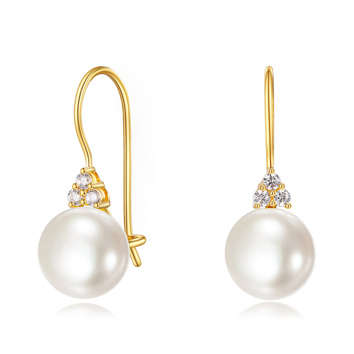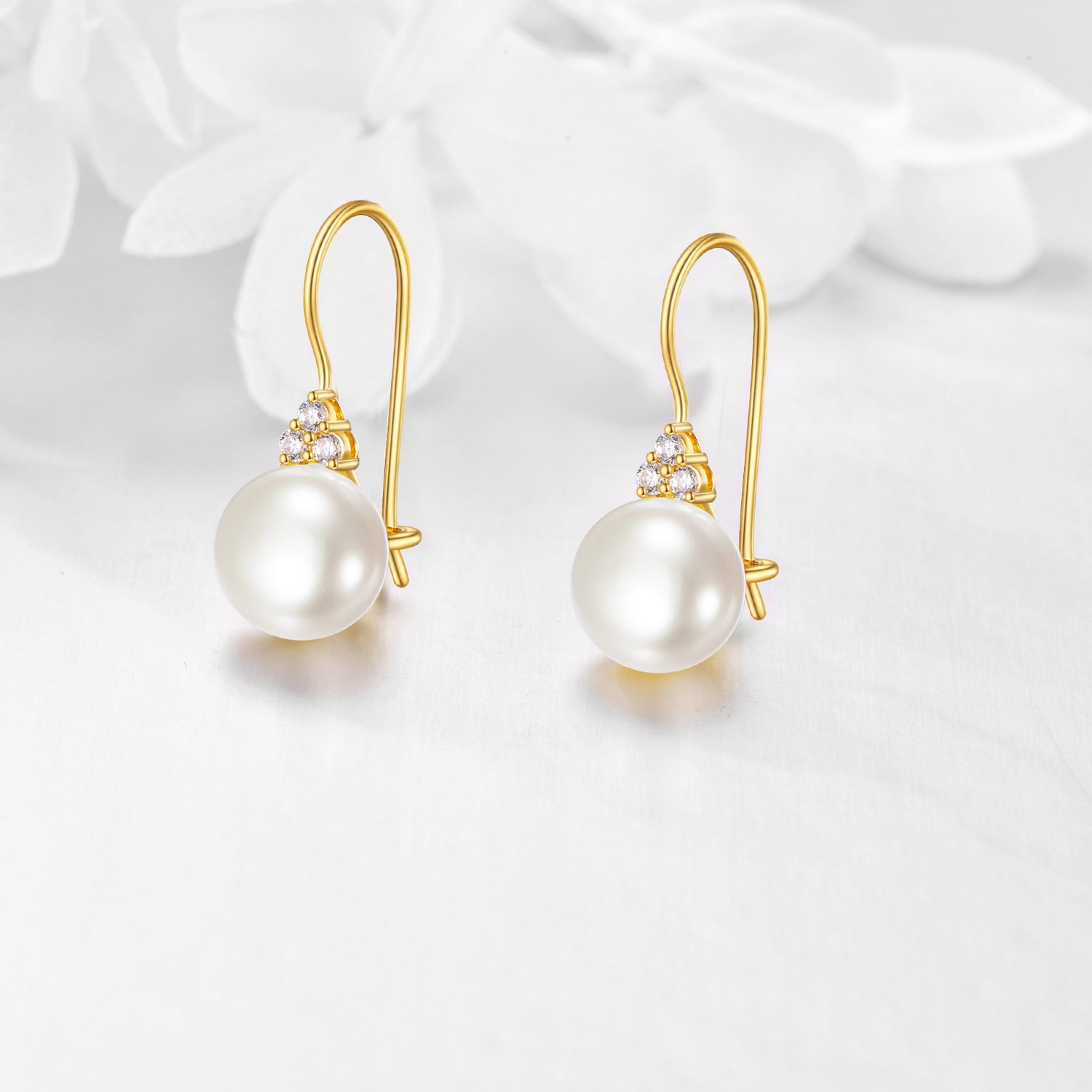 14K Yellow Gold Circular Freshwater Pearl Bead Drop Earrings