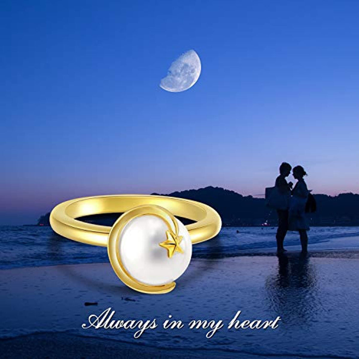 This Ring is crafted from Sterling Silver with Yellow Gold Plating, featuring a dazzling Star Motif and a lustrous Pearl.