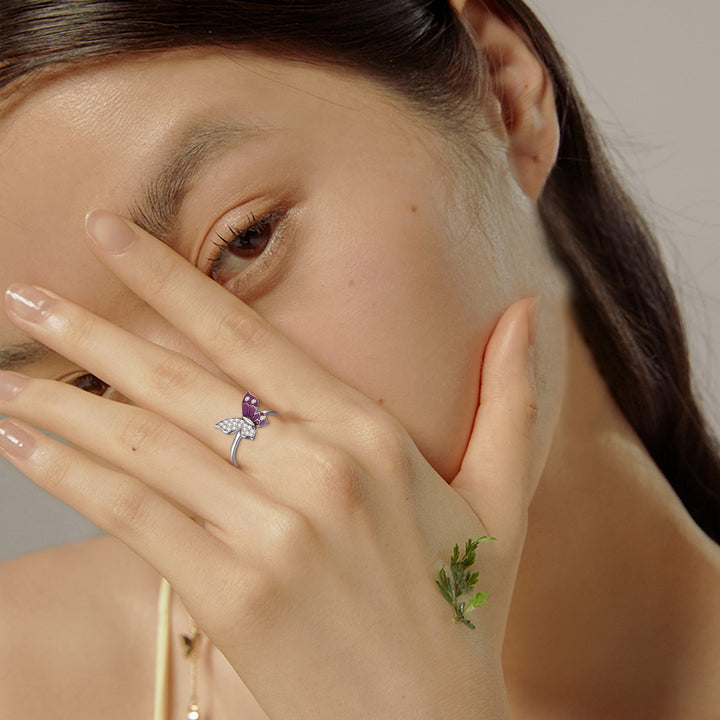 This Round Shaped Ring is Crafted from High-Quality Sterling Silver with White Gold Plating, featuring a Mesmerizing Butterfly Adorned with Sparkling Clear Cubic Zirconia Stones.