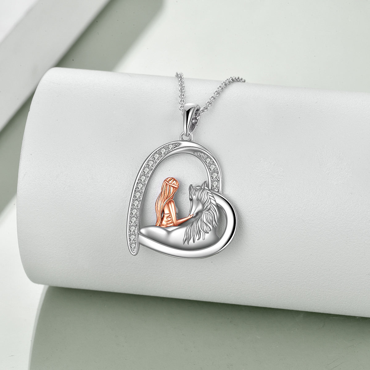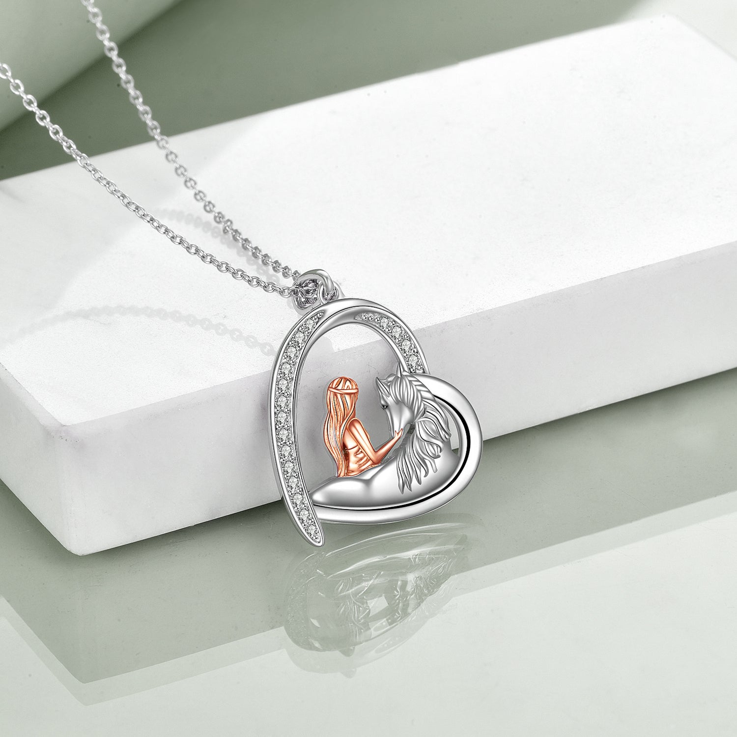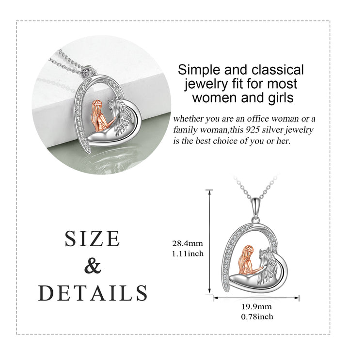 Sterling Silver Two-tone Horse & Heart Pendant Necklace for Women