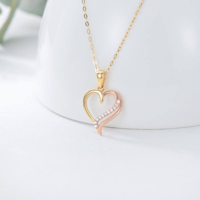 14K Gold Two-Tone Moissanite Heart Pendant Necklace For Women