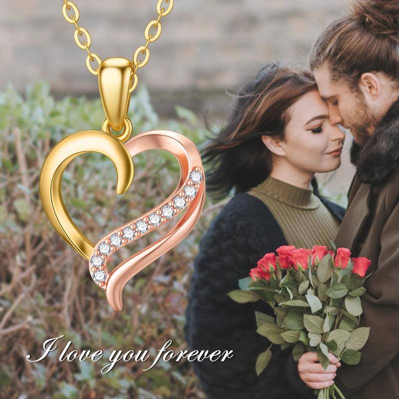 Crafted from solid 14K Gold (Two-Tone: Gold and Rose Gold). This is a Heart Pendant Necklace set with a Moissanite stone.