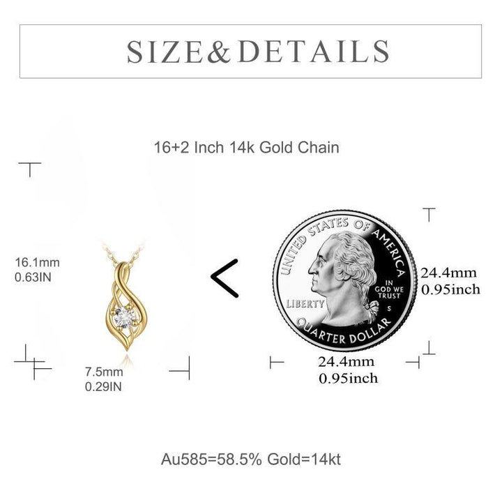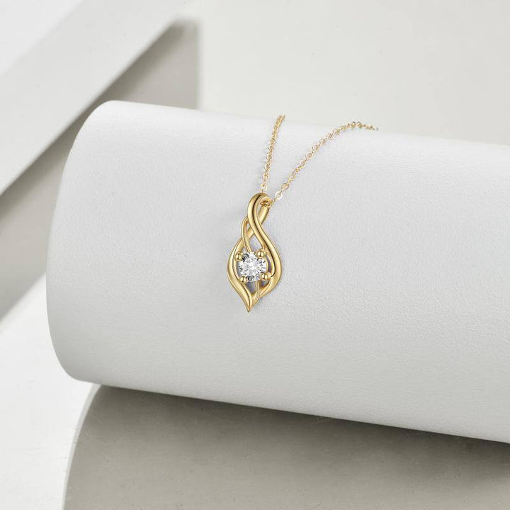 This pendant necklace is crafted from Solid 14K Gold and features a drop-shaped Crystal pendant set with a brilliant Moissanite gemstone.