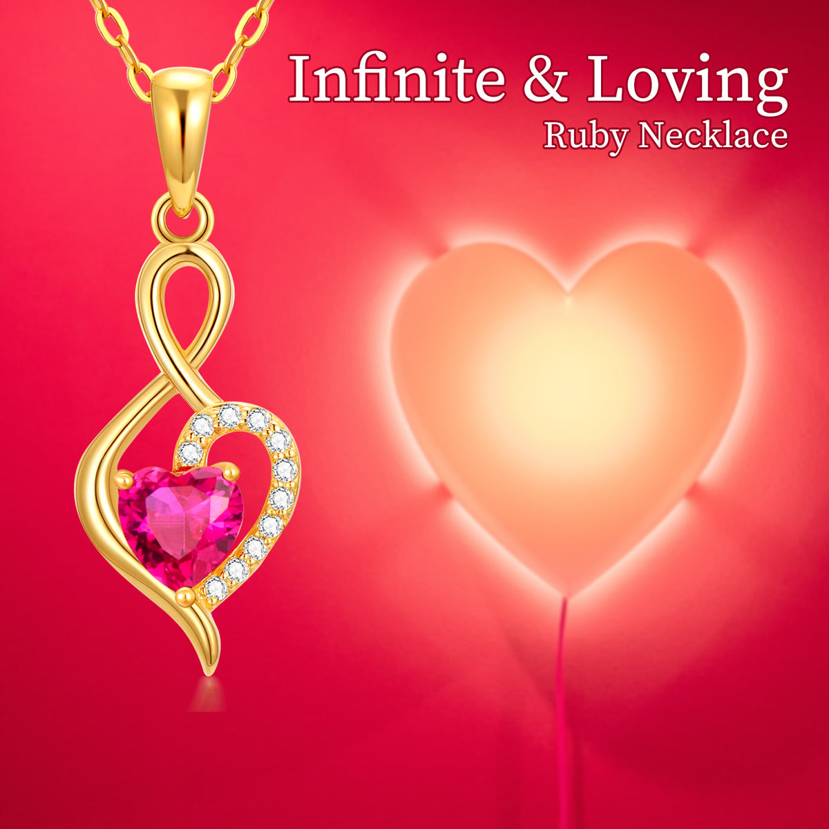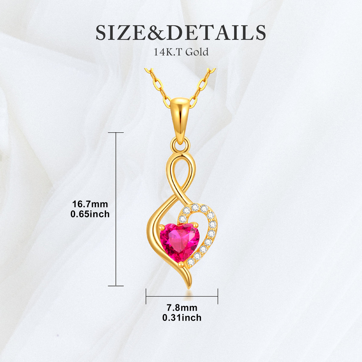 Crafted in 14K gold with garnet birthstone, heart motif, and infinity symbol design. Includes matching chain; standard pendant and chain measurements per YFN.