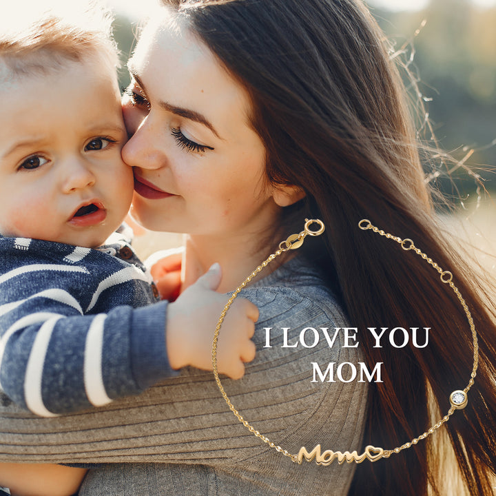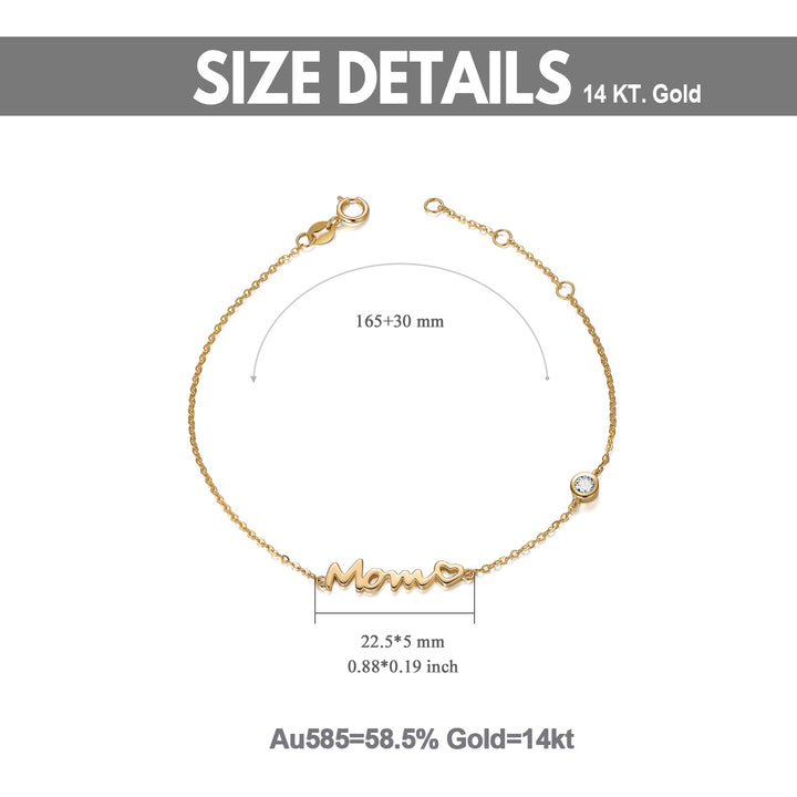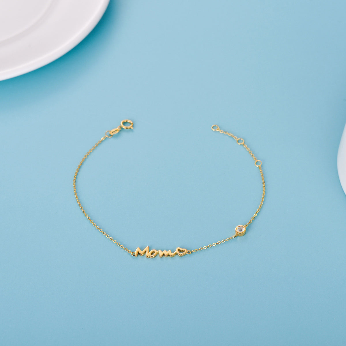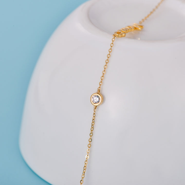 14K Gold Cubic Zirconia Name Plated Charm Bracelet