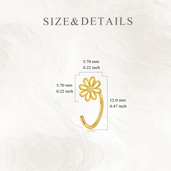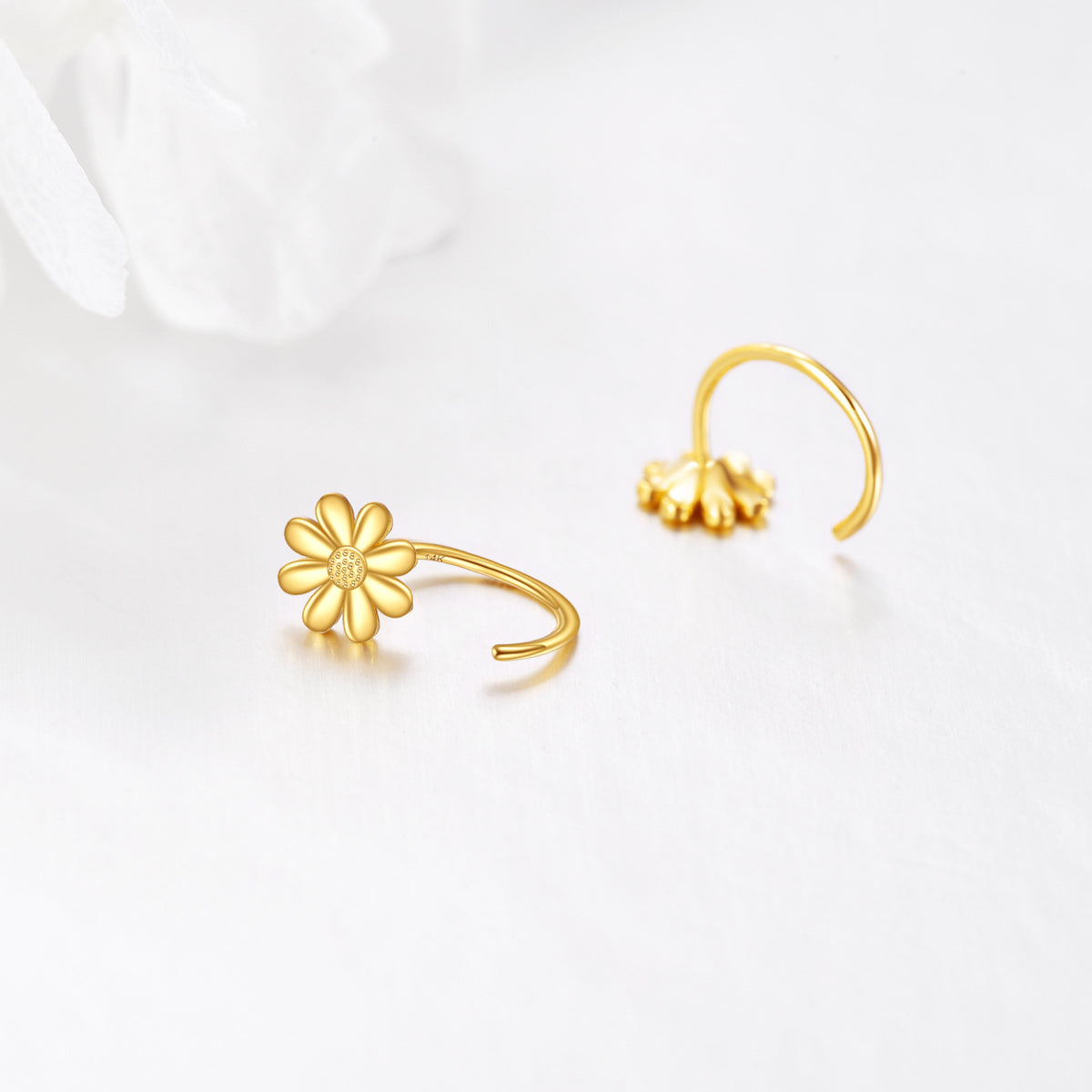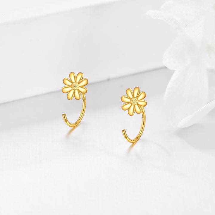 14K Yellow Gold Daisy Dainty Huggie Hoop Earrings