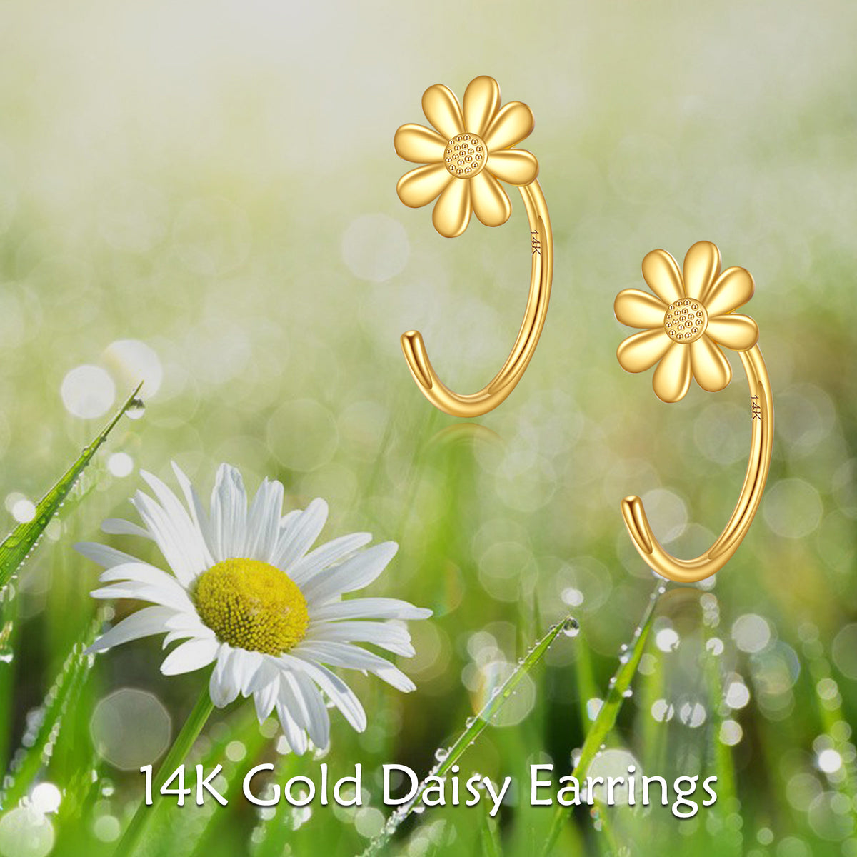 14K gold; daisy motif; huggie hoop design; gold closures.