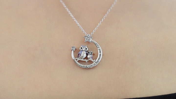Sterling Silver Zircon Owl & Moon Pendant Necklace