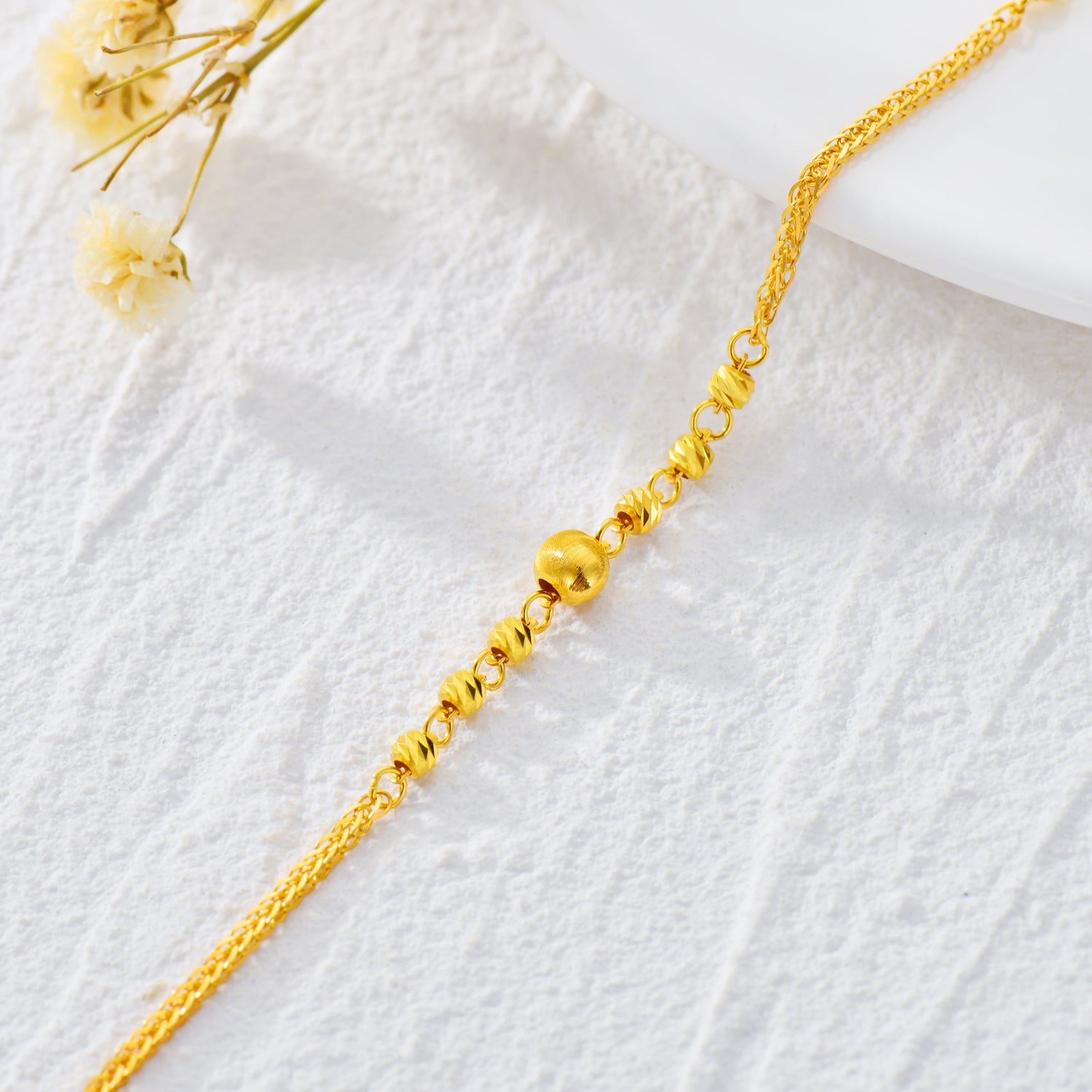 18K Gold Ball Chopin Chain Charm Bracelet