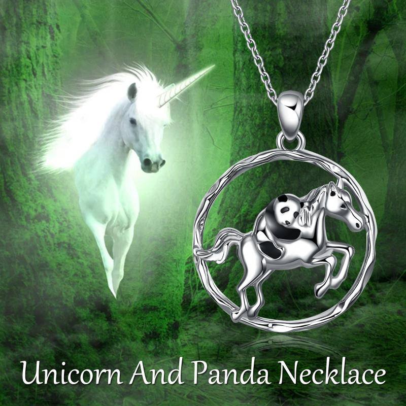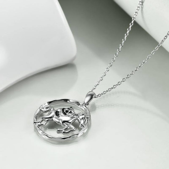 Crafted from Sterling Silver, this pendant features Horse and Panda motifs, accented with White Gold Plating, and is suspended from a durable chain.
