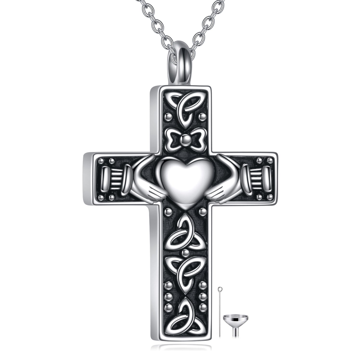 This Sterling Silver Cross Claddagh Pendant Necklace with Engraved Word by YFN is a perfect blend of style and heartfelt sentiment for all genders. Crafted from high-quality sterling silver, this unisex retro silver Cross pendant necklace is devoid of any stones, making it suitable for all. The "Always In My Heart" inscription and striking cross design serve as a constant reminder of love and connection, adding vintage charm and a thoughtful meaning to any outfit.