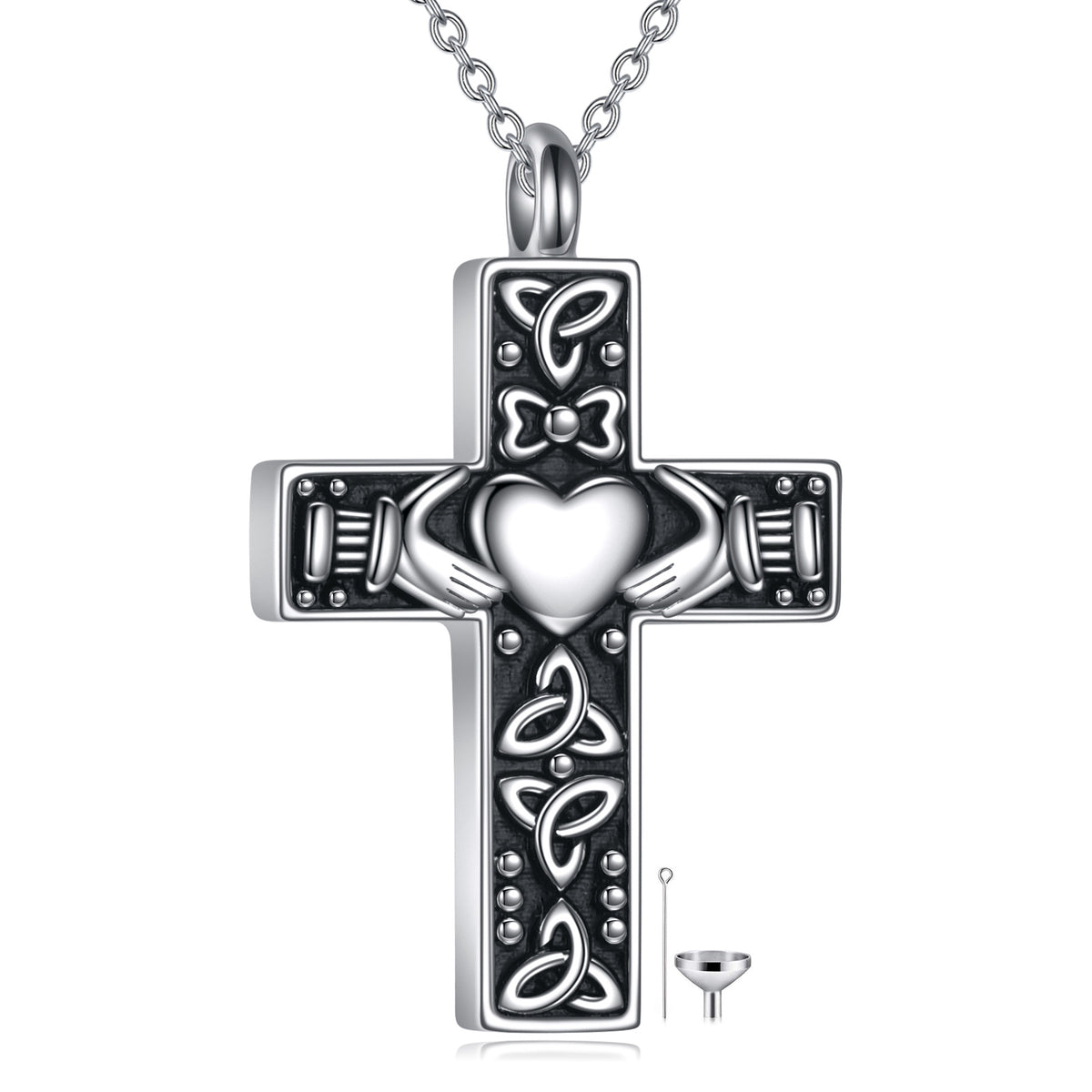 This no-stone Unisex Pendant Necklace is crafted from High-Quality Sterling Silver with Retro Silver Finish, Featuring a Cross Claddagh Design and Engraved with "Always In My Heart."