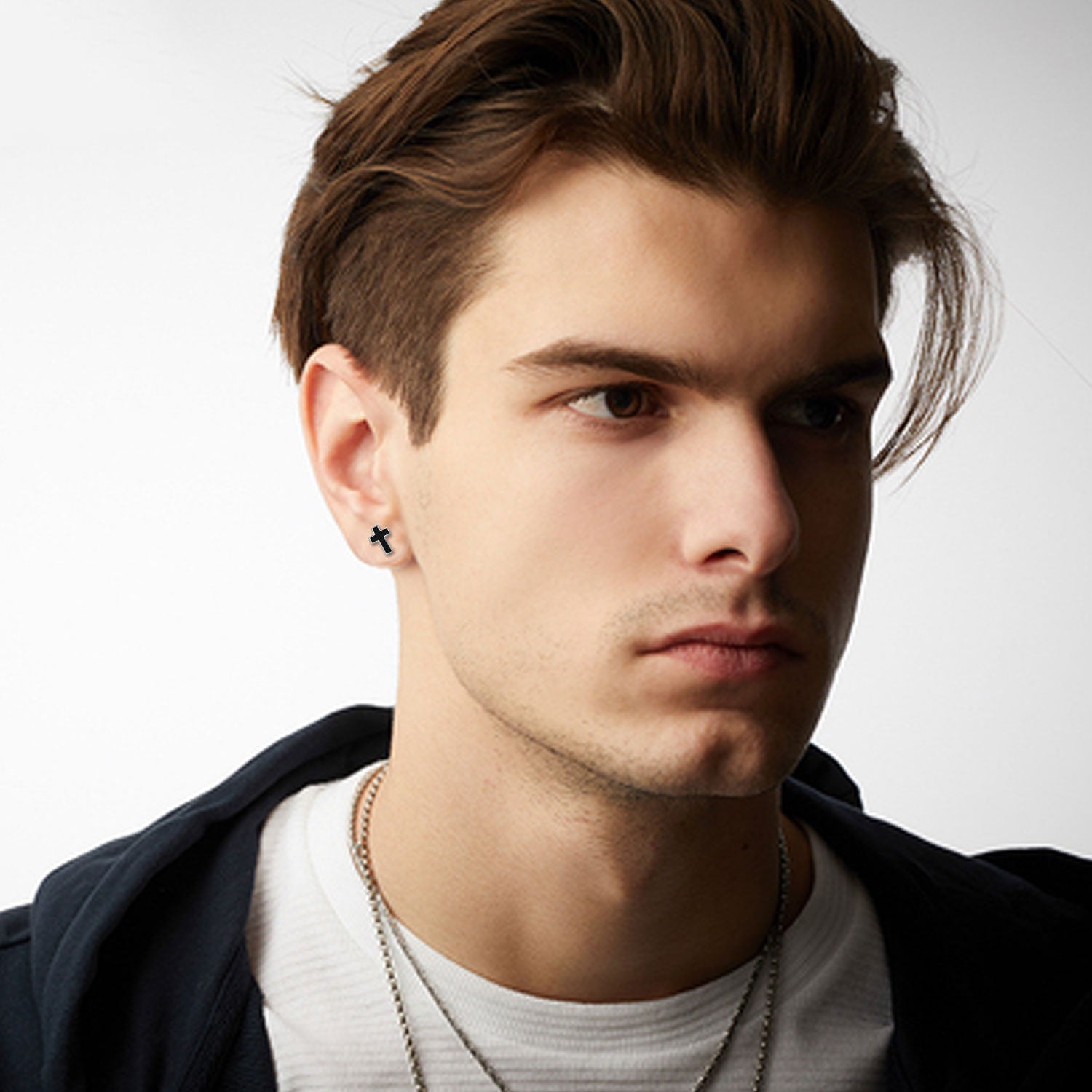 These Sterling Silver Cross Stud Earrings by YFN offer minimalist refinement through their clean, stone-free cross design plated in bright white gold. Crafted for unisex wear, the earrings present a versatile expression of style and symbolism, making them ideal for pairing with any jewelry collection.