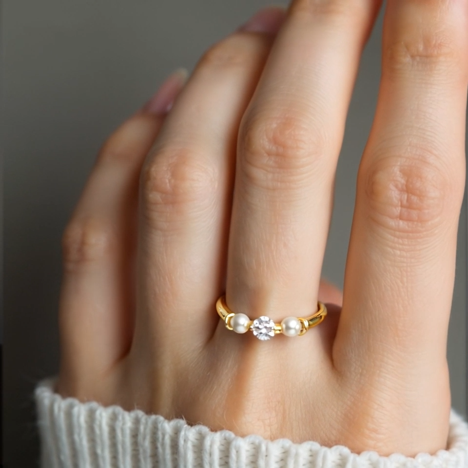 This 18K Gold Lab-Created Diamond & Pearl Personalized Engraving Wedding Ring by YFN is a poetic expression of refinement, pairing luminous pearls with the brilliance of an ethically created diamond. The center diamond—graded F/G color with SI1 clarity—brings a crisp, captivating sparkle, while the two cultured pearls introduce softness and grace. Crafted in rich 18K gold, the ring feels both modern and timeless, a symbol of harmony and devotion. Personal engraving elevates the design into a meaningful keepsake, celebrating love stories, milestones, and bonds that endure.