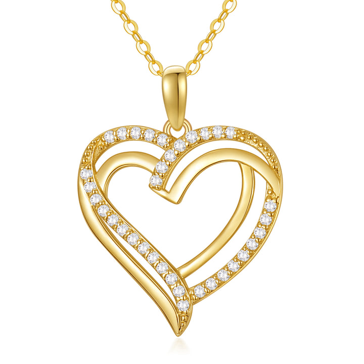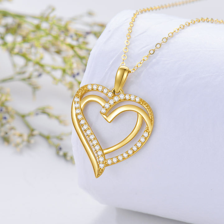 14K Gold Cubic Zirconia Heart Pendant Necklace
