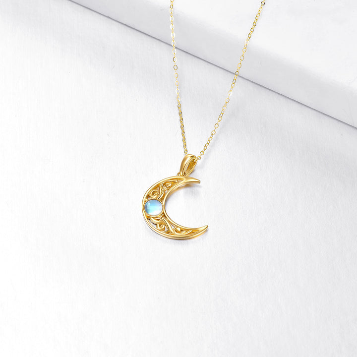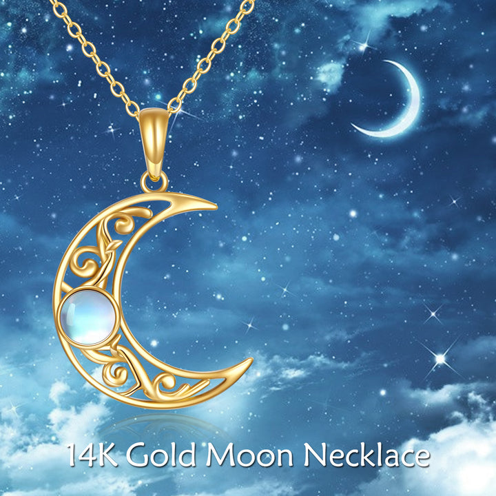This 14K Gold Round Moonstone Moon Pendant Necklace by YFN is a perfect blend of celestial charm and timeless style for women. This stunning necklace showcases a radiant moonstone set within a meticulously crafted 14K gold moon-shaped pendant. Ideal for any occasion, its minimalist yet luxurious design ensures it complements both everyday outfits and special ensembles, making every moment truly luminous and adding sophistication to your jewelry collection.