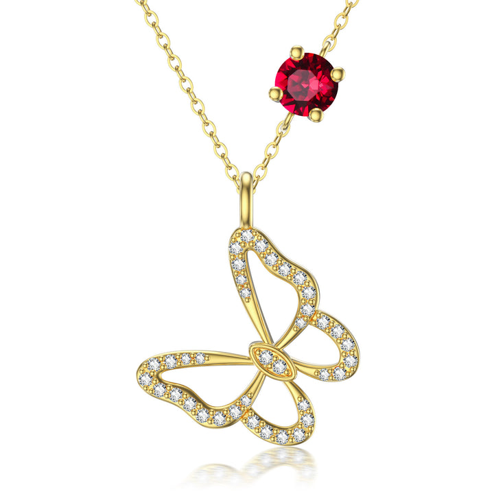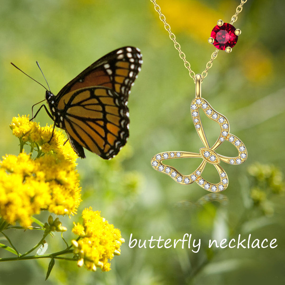 14K Gold Circular Shaped Cubic Zirconia Butterfly Pendant Necklace