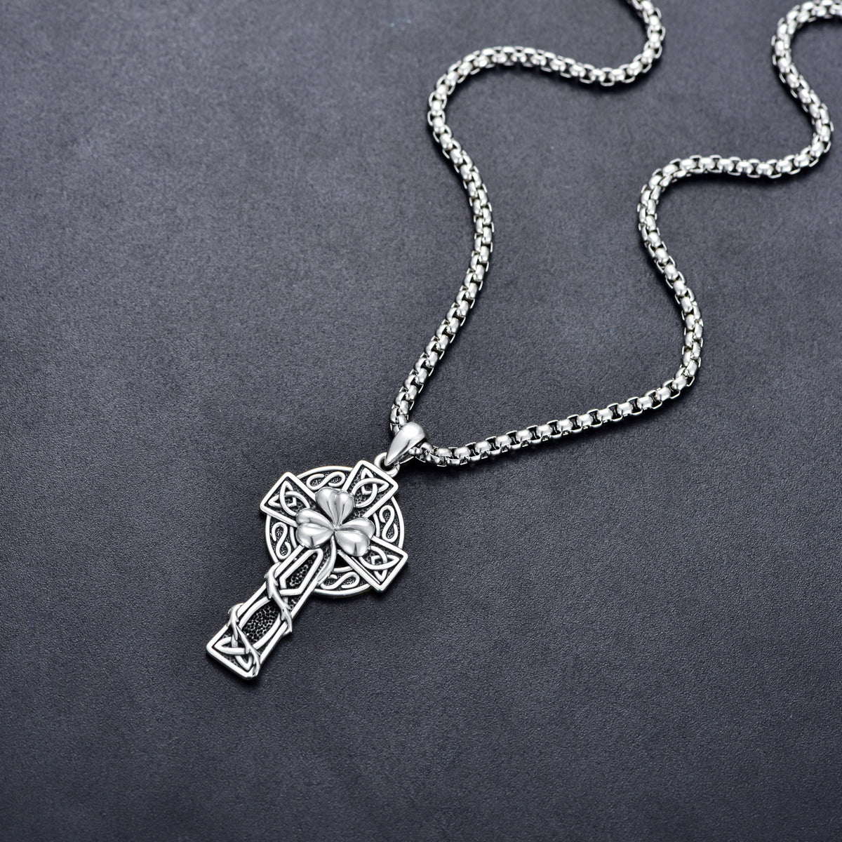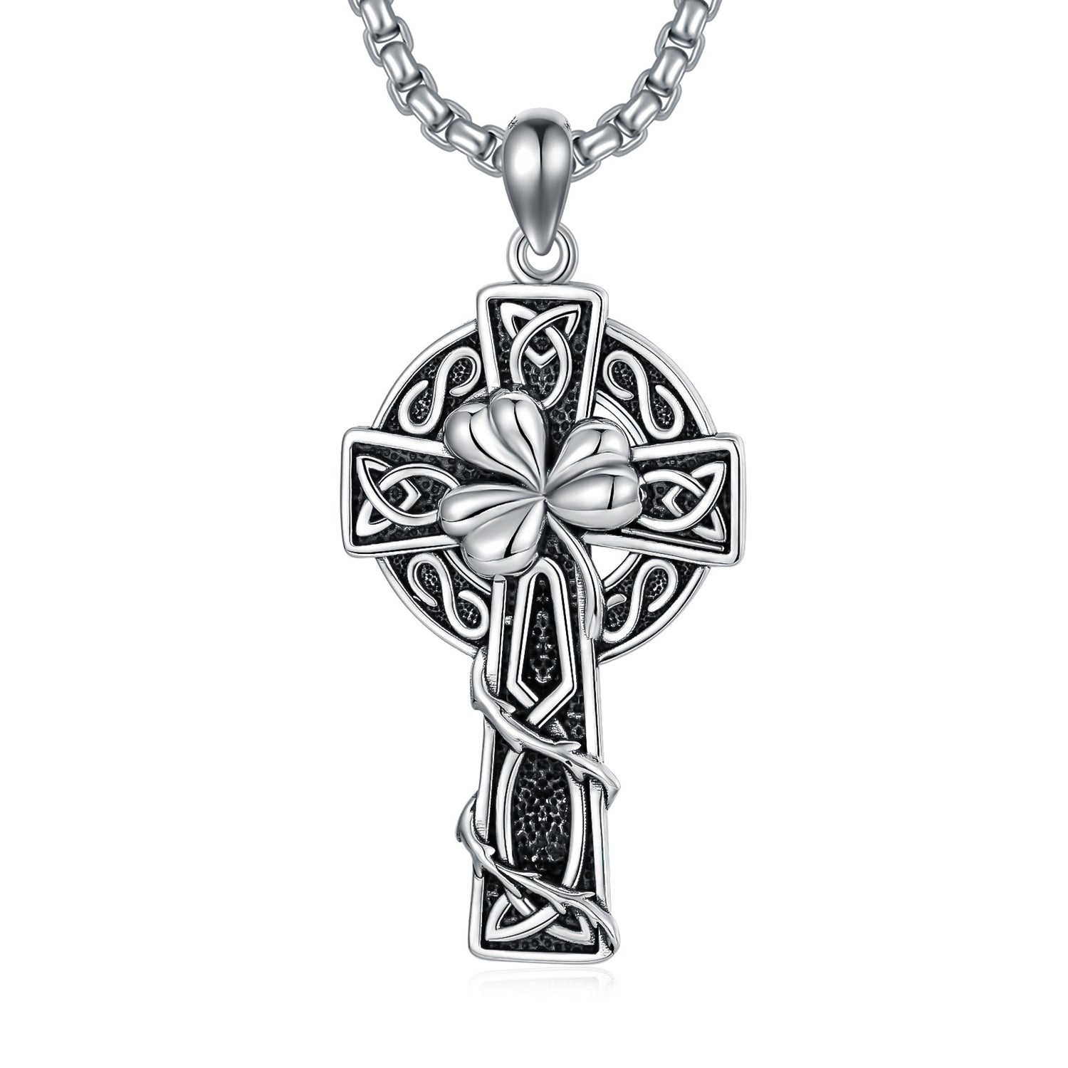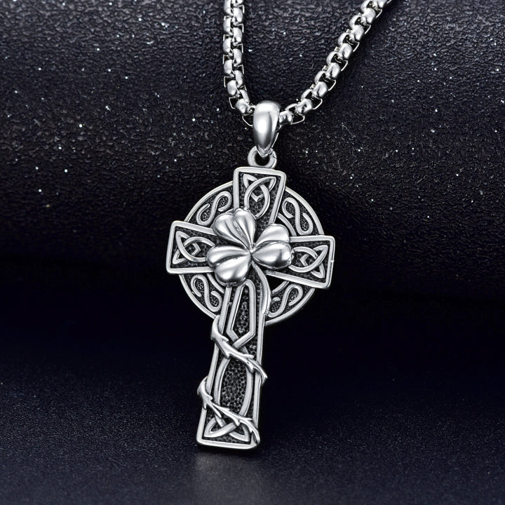 This Sterling Silver Celtic Knot & Cross Pendant Necklace by YFN merges spiritual symbolism with intricate artistry. The intertwined knot and cross represent unity and faith, enhanced by a retro silver finish that adds vintage charm. Designed as a unisex piece, it complements a wide range of styles.
