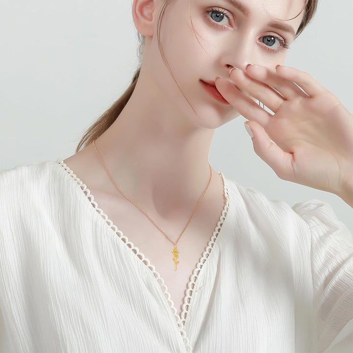 10K Gold Rose Necklace for Women