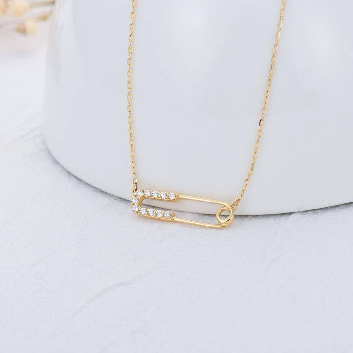 14K Gold Cubic Zirconia Paper Clip Pendant Necklace