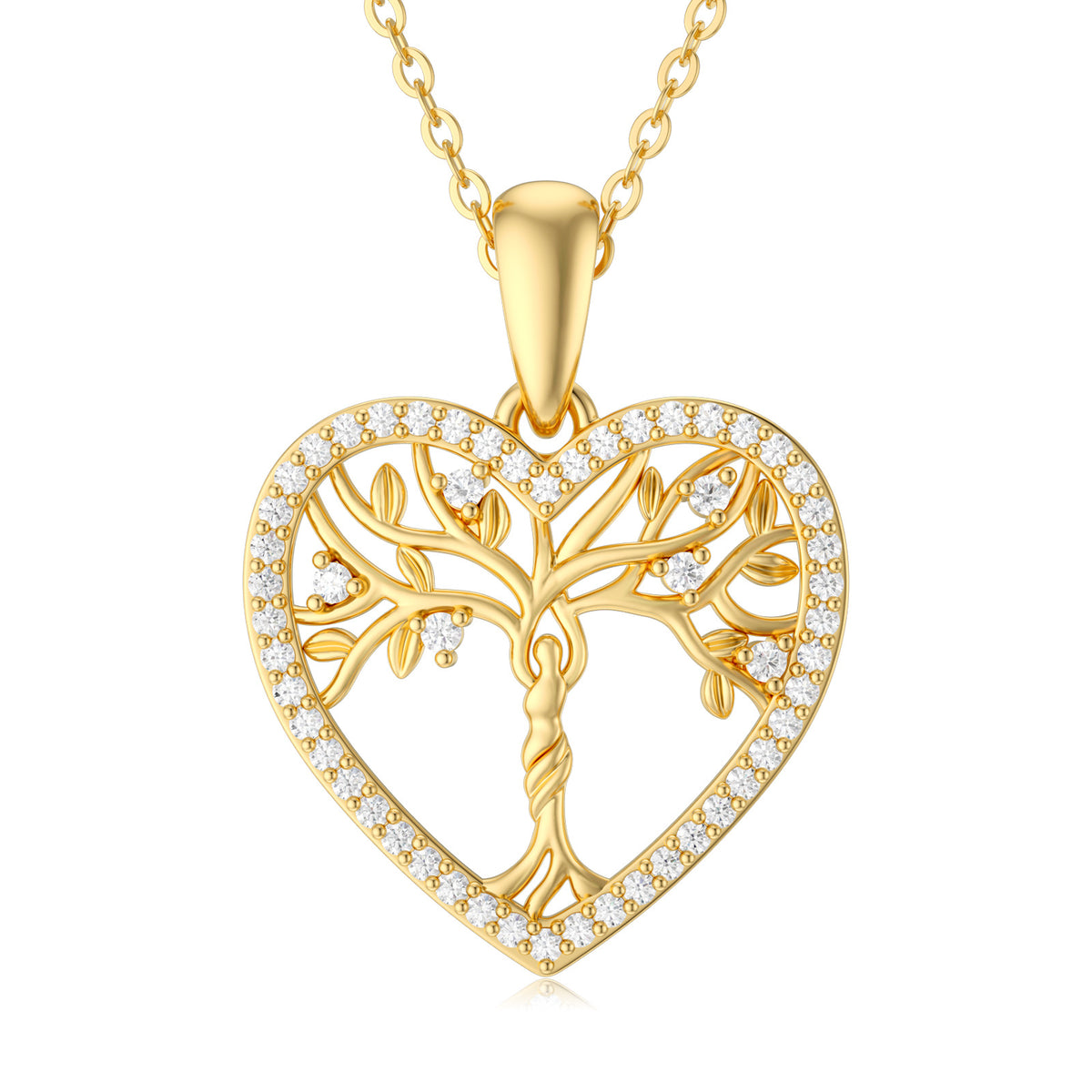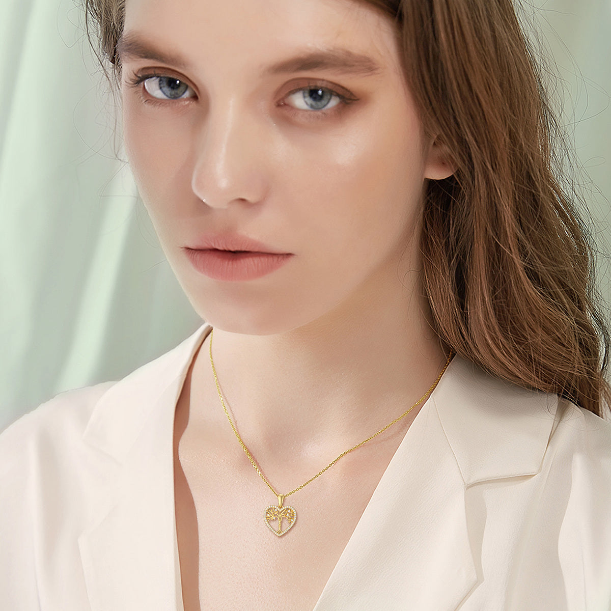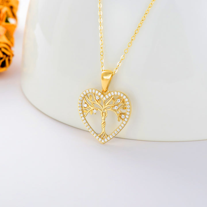 14K Gold Moissanite Tree Of Life & Heart Pendant Necklace