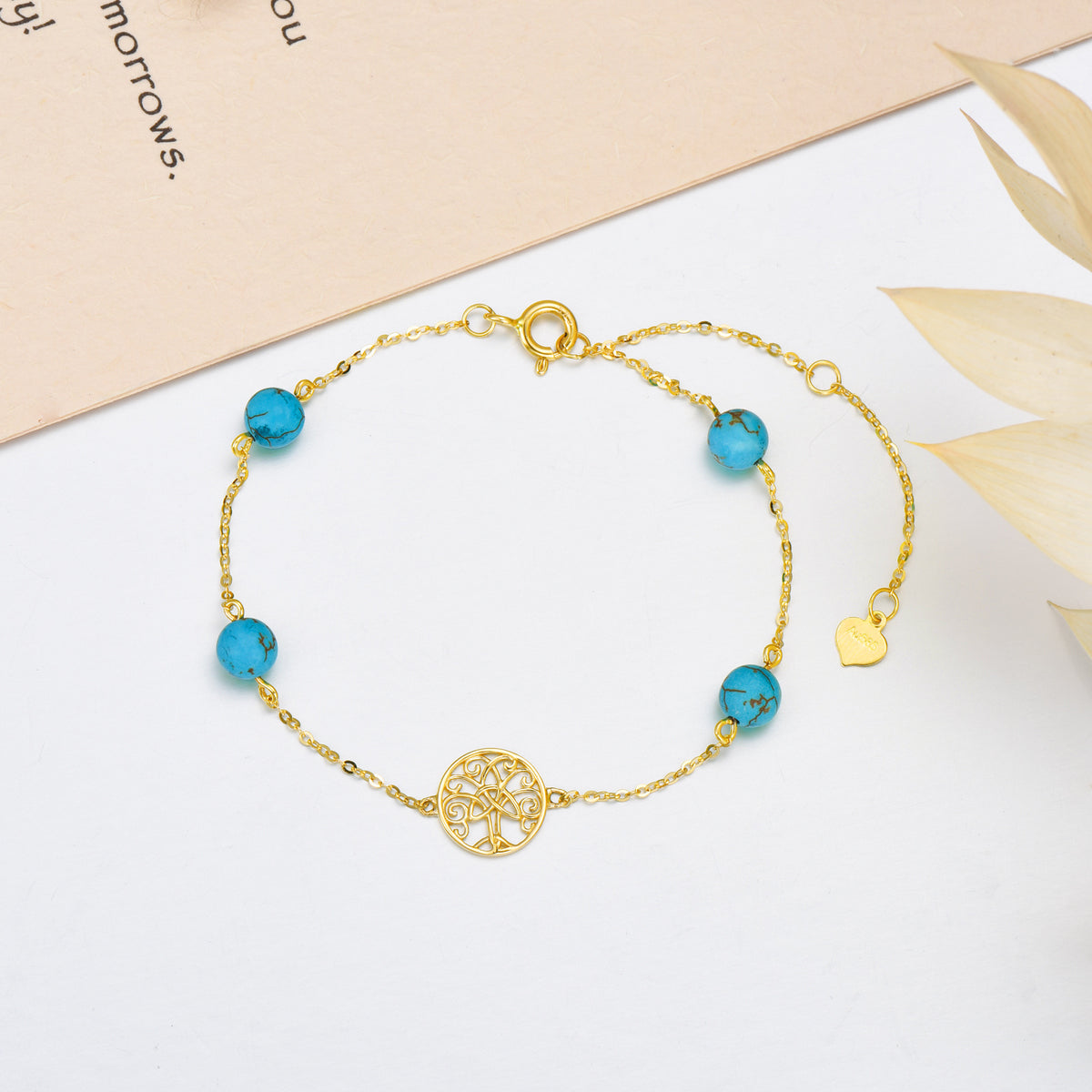 14K Gold Turquoise Tree Of Life Charm Bracelet