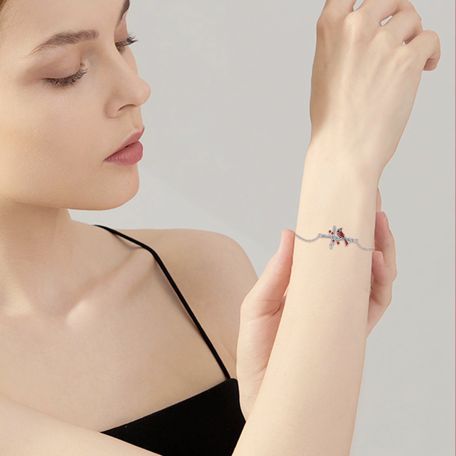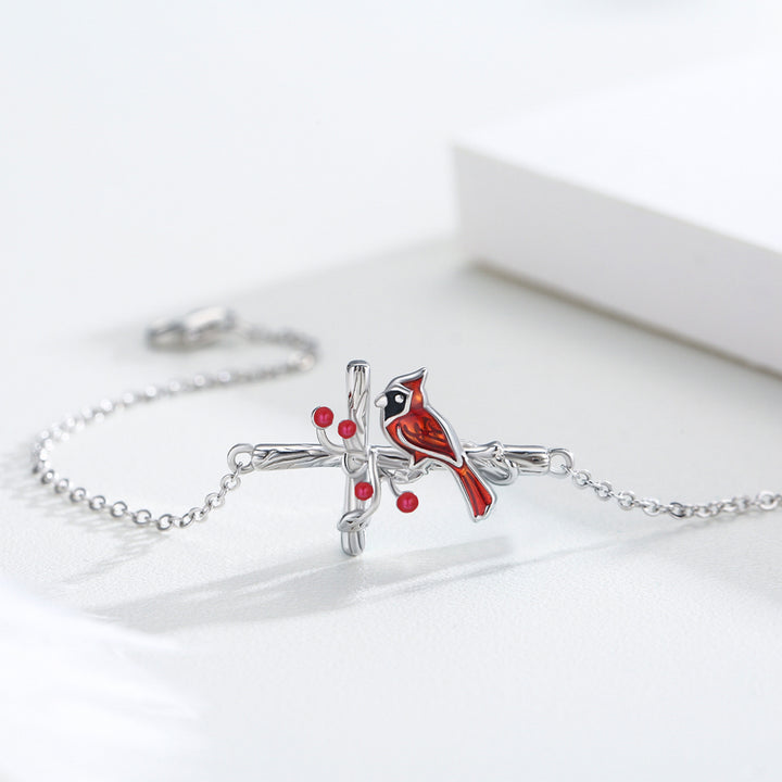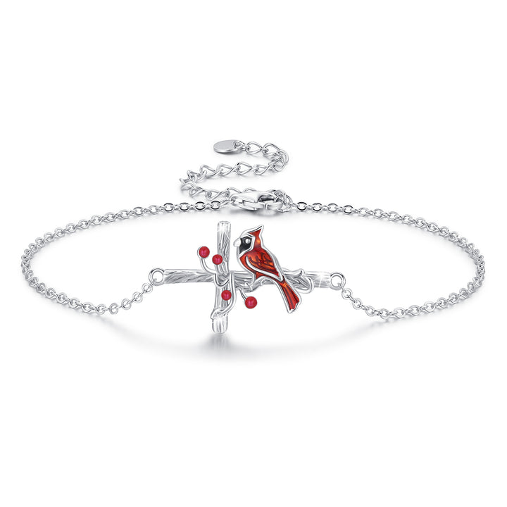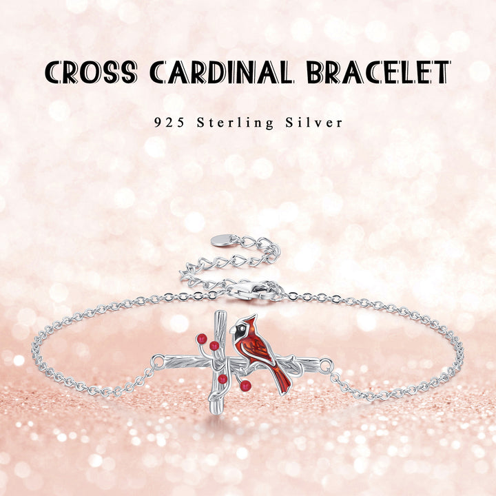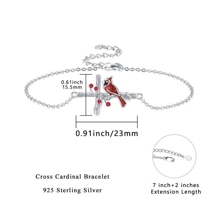 Sterling Silver Cardinal & Cross Charm Bracelet