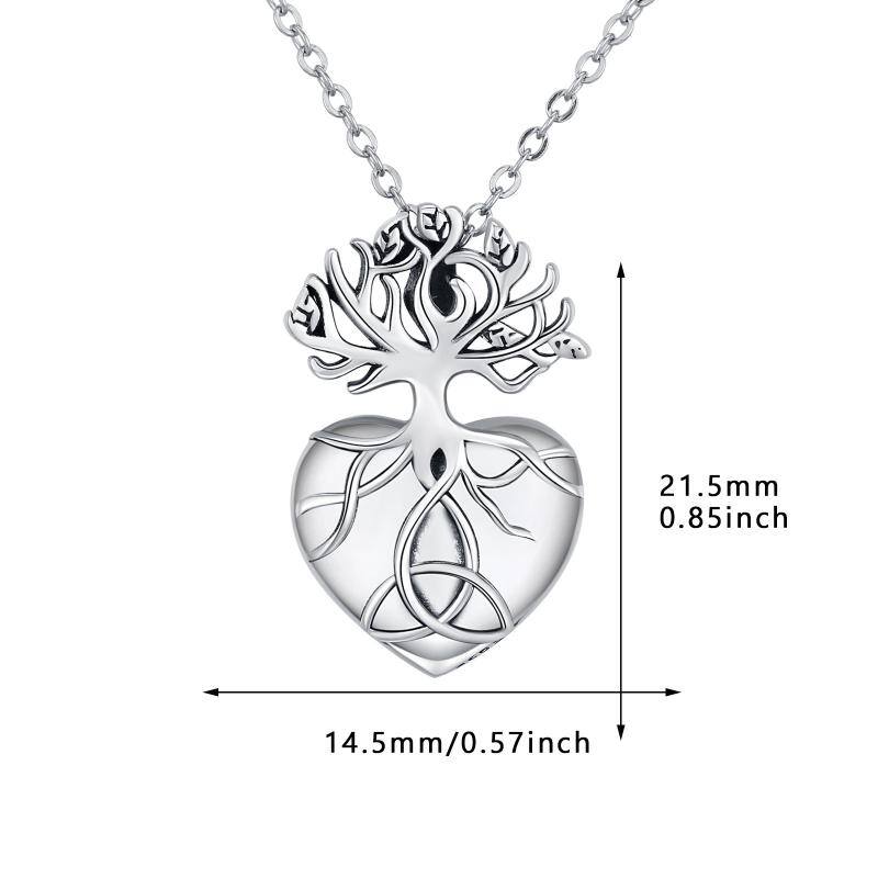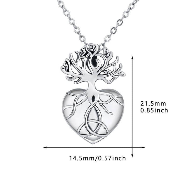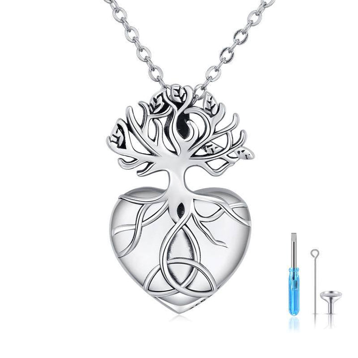 Crafted from premium Sterling Silver with a Retro Silver finish, this stone-free Heart Urn Necklace for Ashes features Tree Of Life and Celtic Knot intricate patterns.
