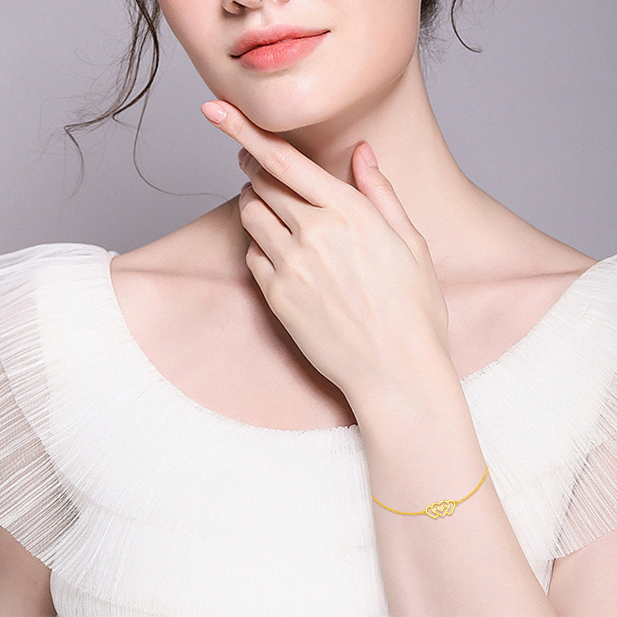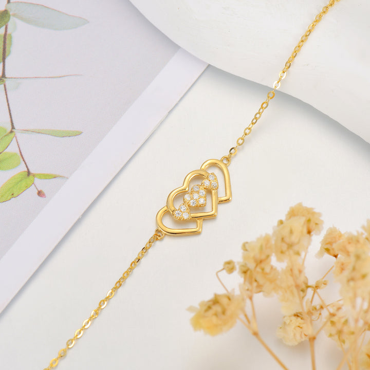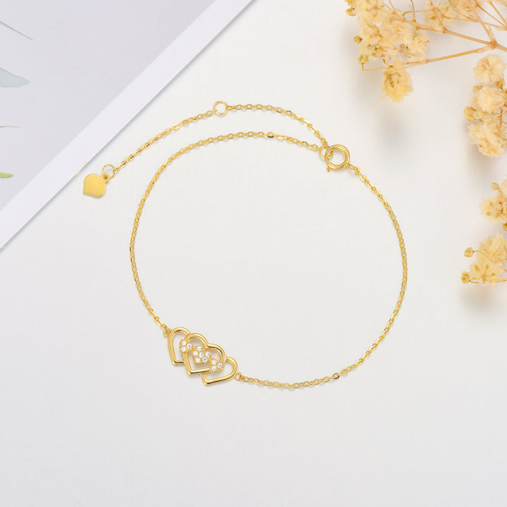 This 14K Gold Round Cubic Zirconia Heart Charm Bracelet For Women by YFN elevates elegance with its luxurious and timeless style. This stunning Charm Bracelet is meticulously fashioned from 14K Gold, providing a lustrous finish. The unique Round Charm showcases a Heart-Within-Heart Motif encrusted with brilliant Cubic Zirconia stones that catch the light beautifully, making it an ideal gift or a cherished addition that exudes sophistication and sentimental value.