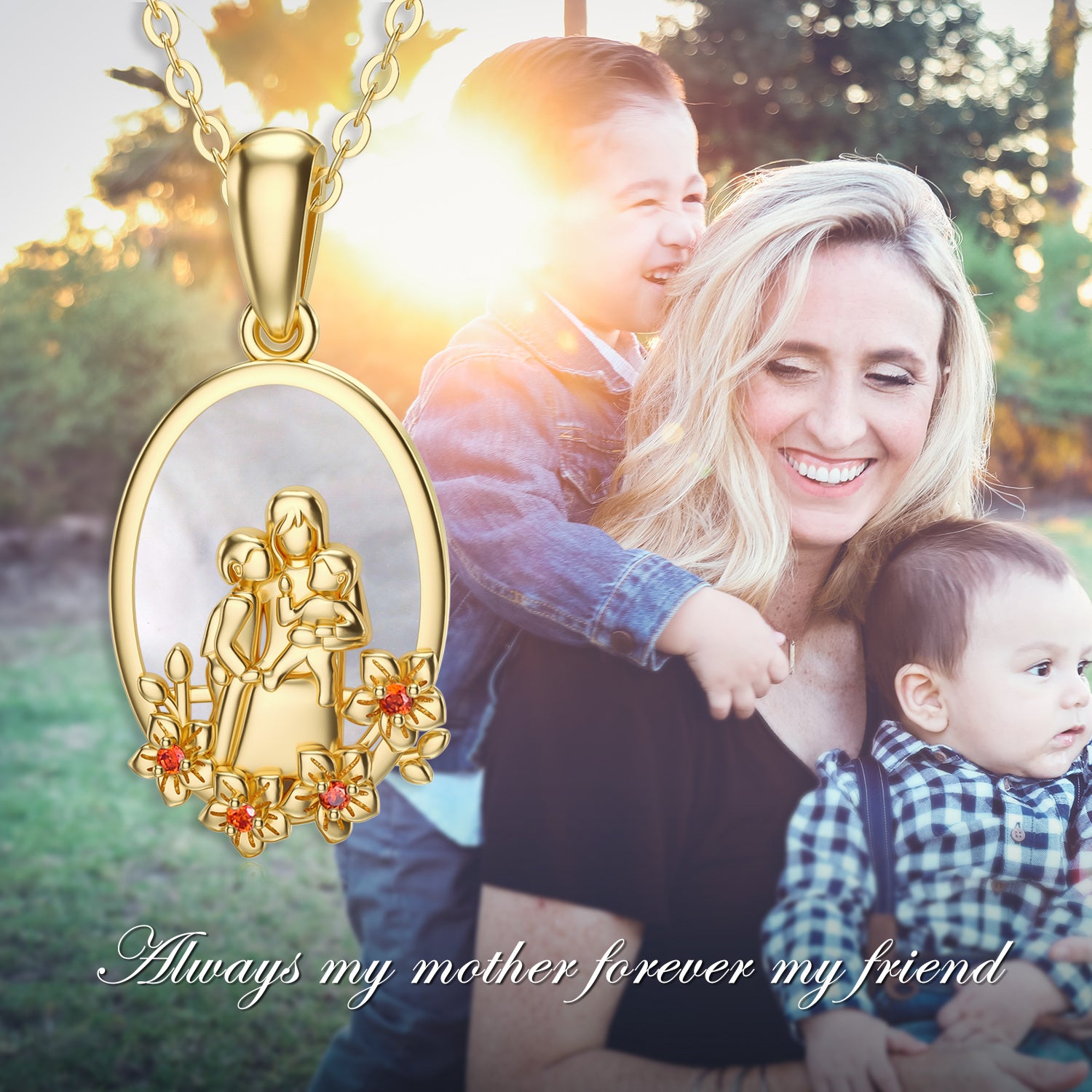 14K Gold Oval Abalone Shellfish Cubic Zirconia Parents & Children Pendant Necklace For Mother