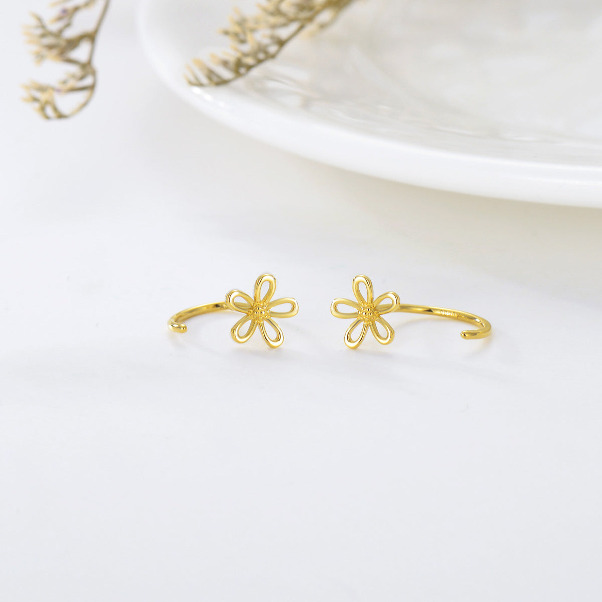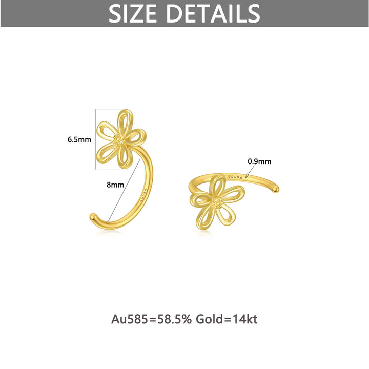 14K Yellow Gold Daisy Half Huggie Hoop Earrings for Women Fine Jewelry Gift for Her