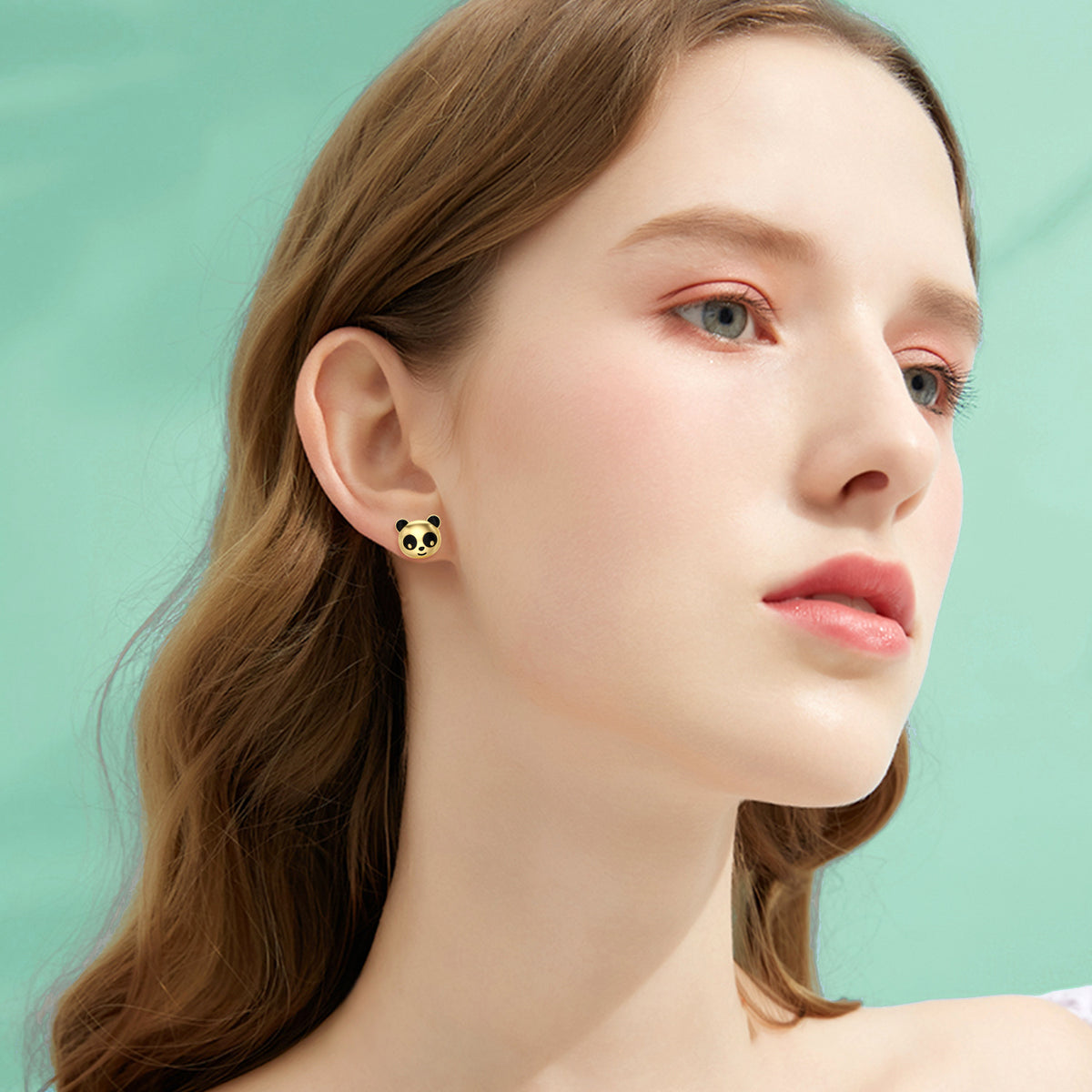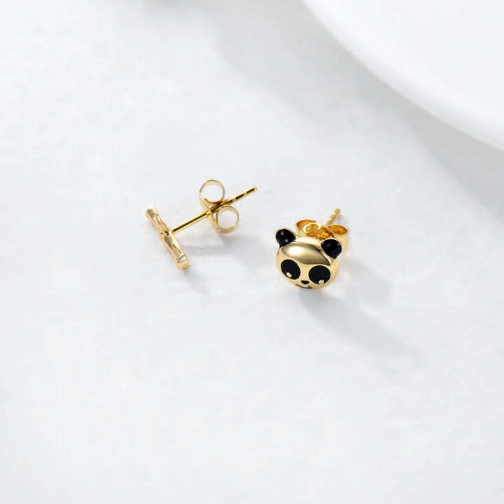 These stud earrings are crafted entirely from Solid 14K Gold (Yellow Gold) and feature a stone-free, detailed Panda and Bamboo motif.