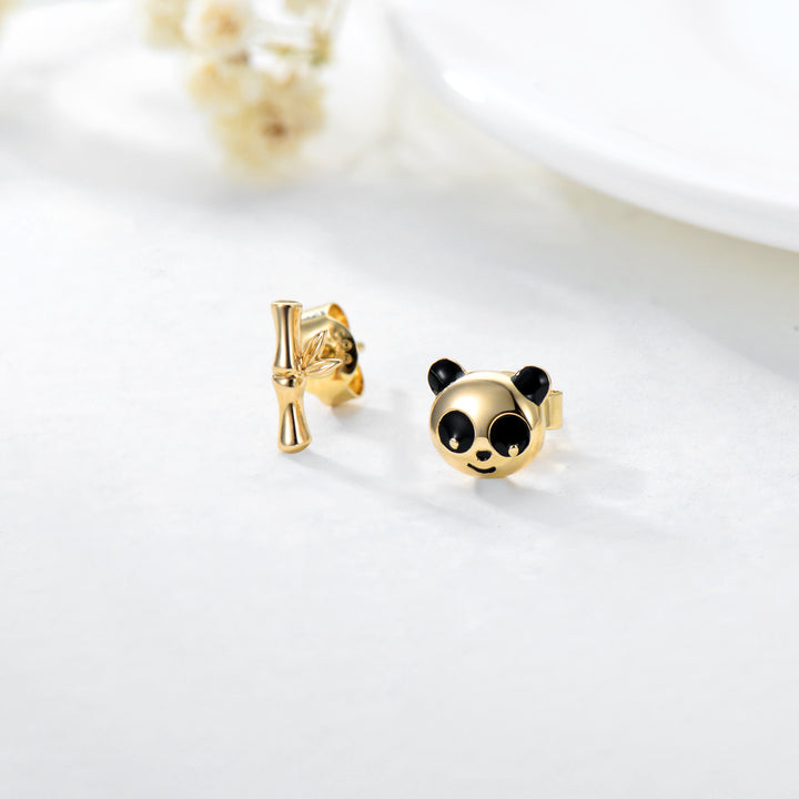 14K Gold Panda & Bamboo Stud Earrings for Girl
