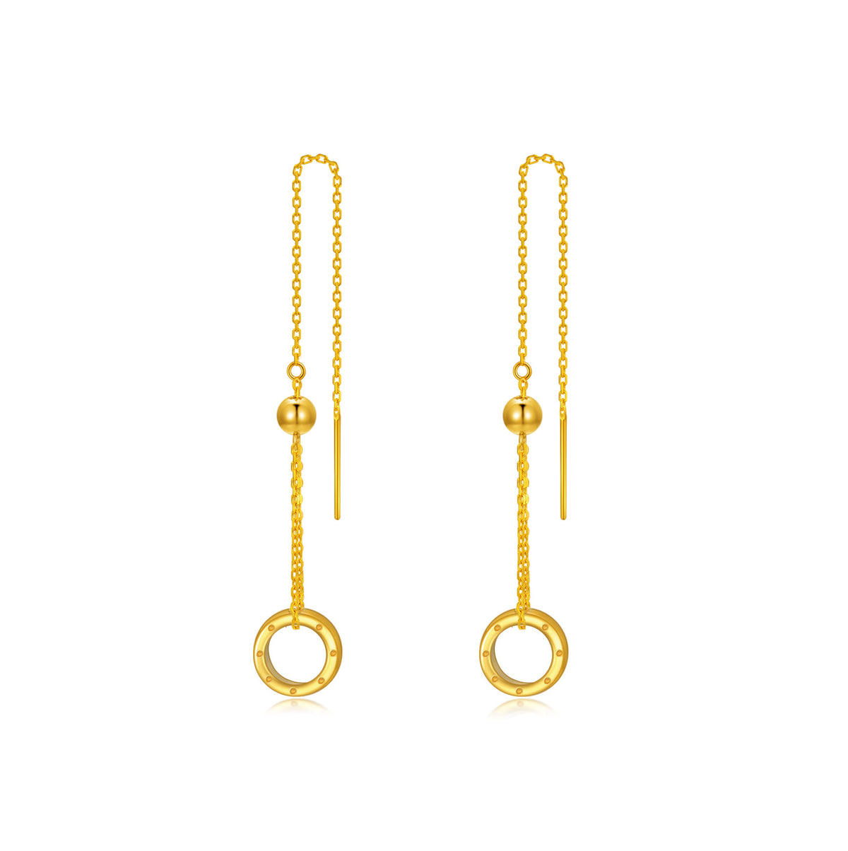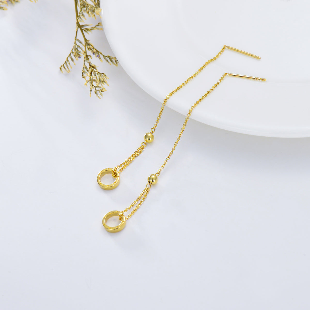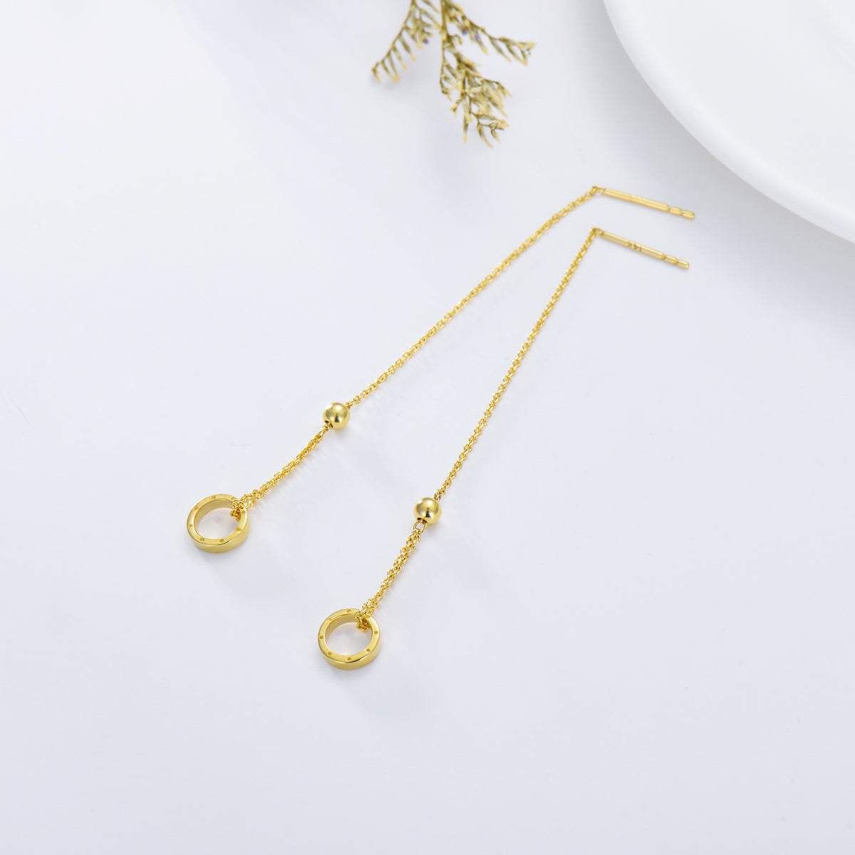 Crafted from high-quality 14K Gold, these stone-free Drop Earrings feature a Round Threader design.