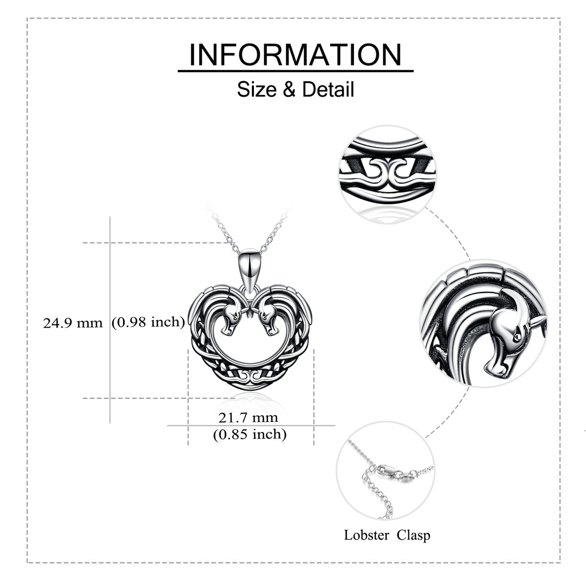 This Sterling Silver Horse & Heart Pendant Necklace by YFN combines strength and sentiment in a single sculptural design. The horse symbolizes freedom and vitality, while the heart brings emotional warmth to the piece. With its retro-silver finish and stone-free simplicity, the pendant feels timeless and unisex, offering a meaningful accessory for anyone who loves symbolic jewelry with understated elegance.
