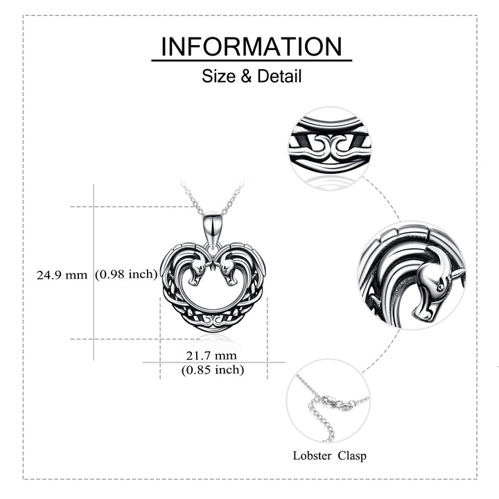 Sterling Silver Horse & Heart Pendant Necklace