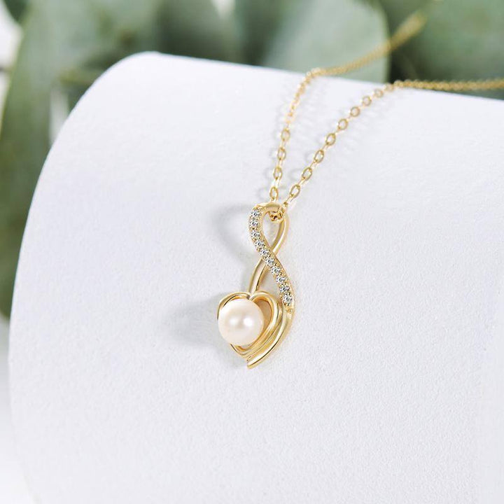 9K Gold Pearl Cubic Zirconia Heart Infinity Symbol Pendant Necklace For Women