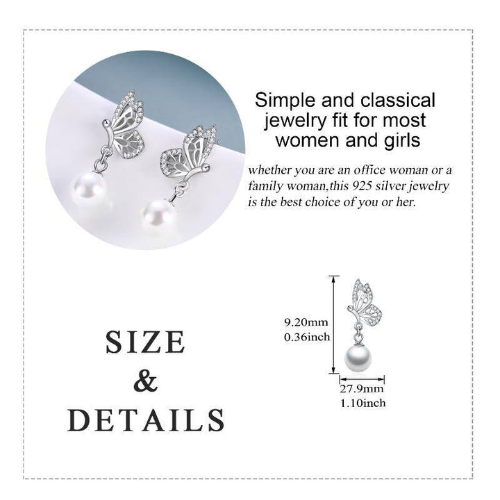 These Sterling Silver Pearl Butterfly Drop Earrings by YFN capture the essence of delicate beauty and refined elegance, perfect for women who adore nature-inspired jewelry. The graceful butterfly motifs symbolize transformation and lightness, while the lustrous pearls add timeless sophistication and femininity. Crafted in sterling silver and enriched with radiant white gold plating, these earrings offer durability, brilliance, and long-lasting charm. The drop silhouette provides graceful movement, making them suitable for both everyday wear and special occasions, effortlessly elevating any ensemble with exquisite detail and gentle allure.